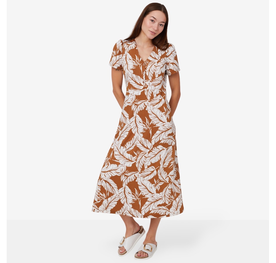 Printed Brazil Knit Jersey Short Sleeve Jenny Midi Dress