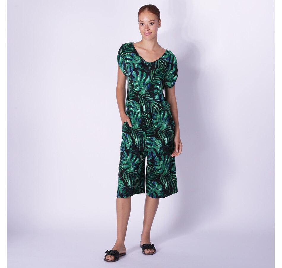 Printed Brazil Knit Knee Length Jumpsuit With Pocket
