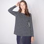 • Soft round neckline, shirring at sleeve head