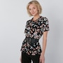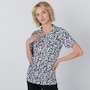 Kim & Co Printed Brazil Knit Peter Pan Collar Cap Sleeve Top
