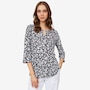 Printed Brazil Knit ¾ Sleeve Keyhole Detail Top