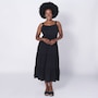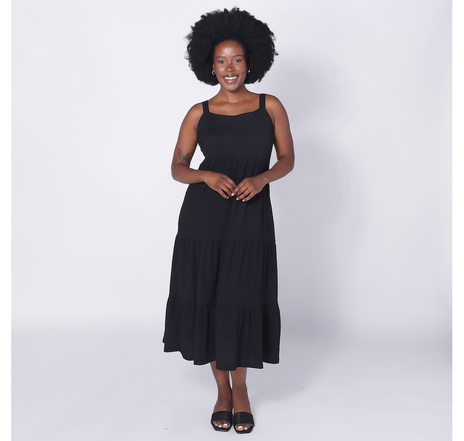 • Relaxed fit, square neckline, wide straps, shirring along tiers, pull-on