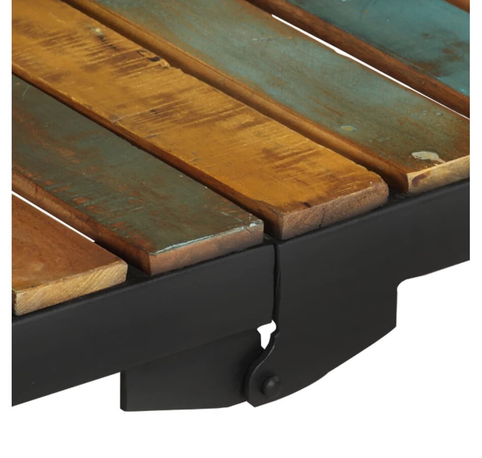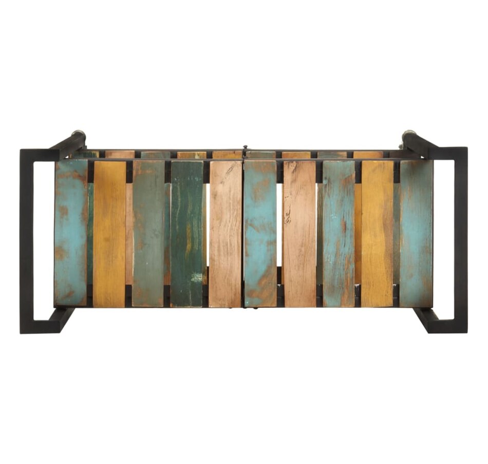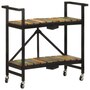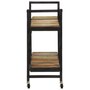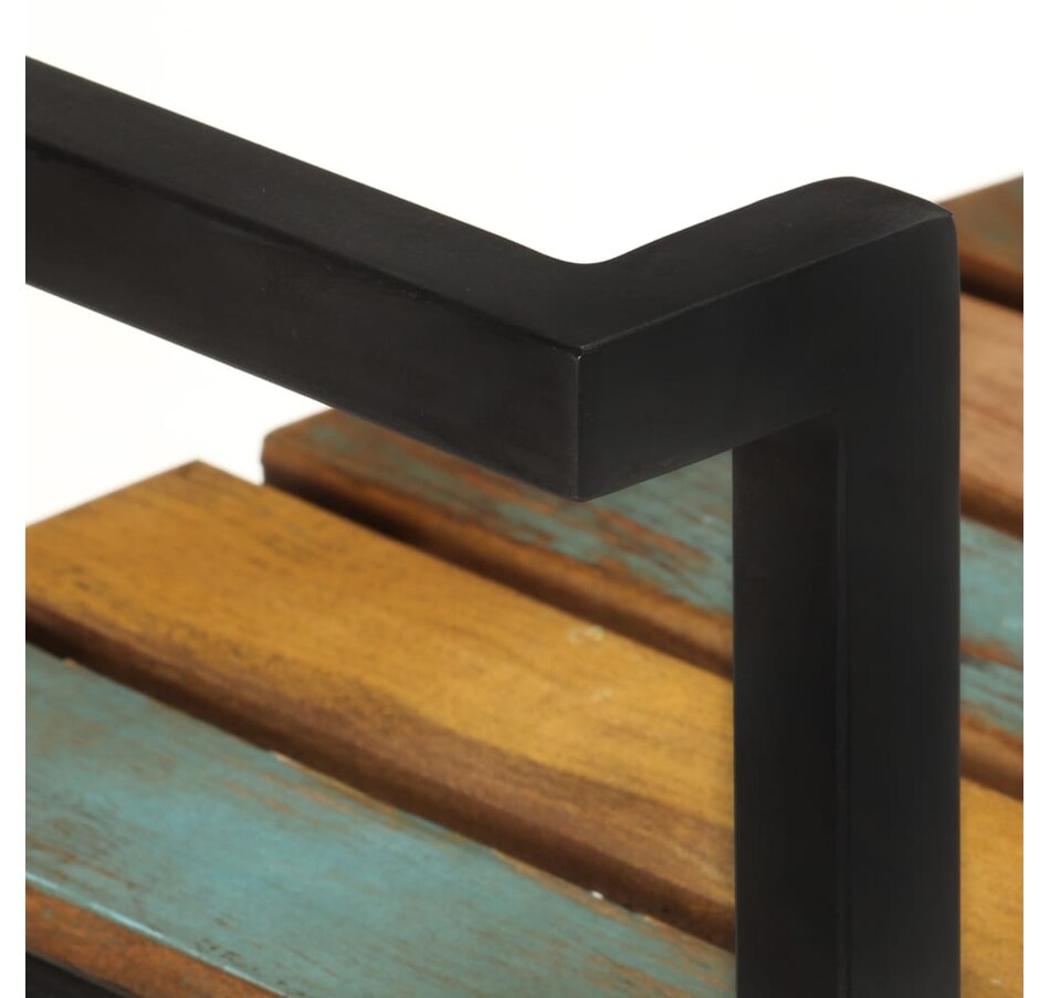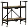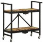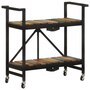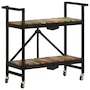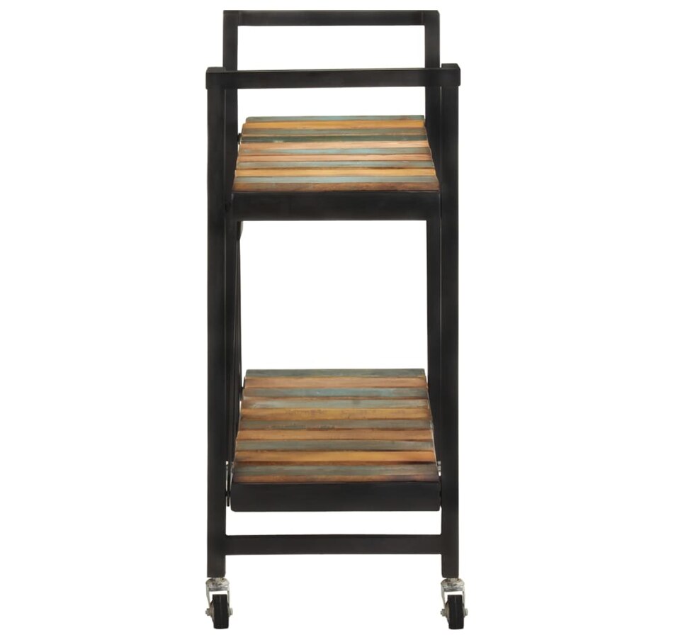 This kitchen cart adds a distinctive, rustic ambiance and provides additional storage space to your home. This kitchen cart is made from solid reclaimed wood, sourced from the joists, floors and support beams of old demolished buildings . Additionally, it can consist of different types of wood such as teak, hardwood, tropical wood, mango wood, etc. This means that reclaimed wood retains the characteristics of these different types of wood. Reclaimed wood is already aged, weathered and dried. Therefore, it does not shrink or bend. The powder-coated steel frame also adds to its sturdiness. This storage cart features 2 compartments to place food, bottles, and other essential items within easy reach. With its foldable design, the shelf cart can be easily stored when not in use. Additionally, the kitchen rack is equipped with flexible wheels for easy movement. Important note: Colors vary from piece to piece, making each wooden kitchen cart unique.