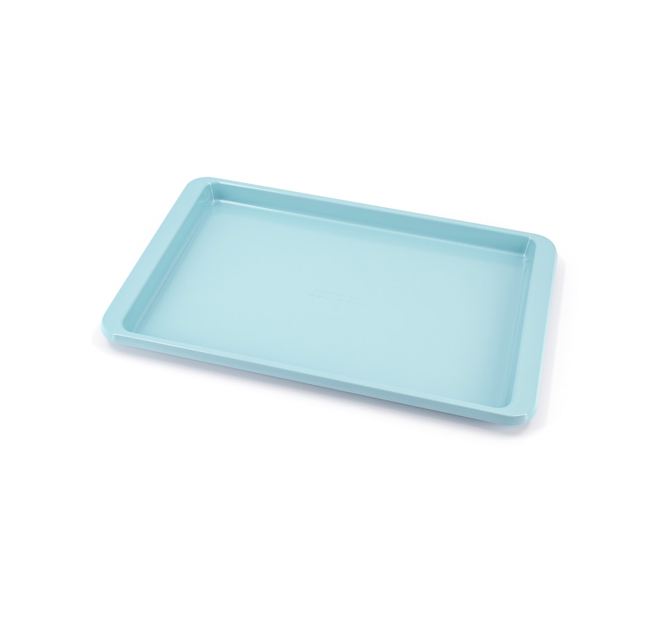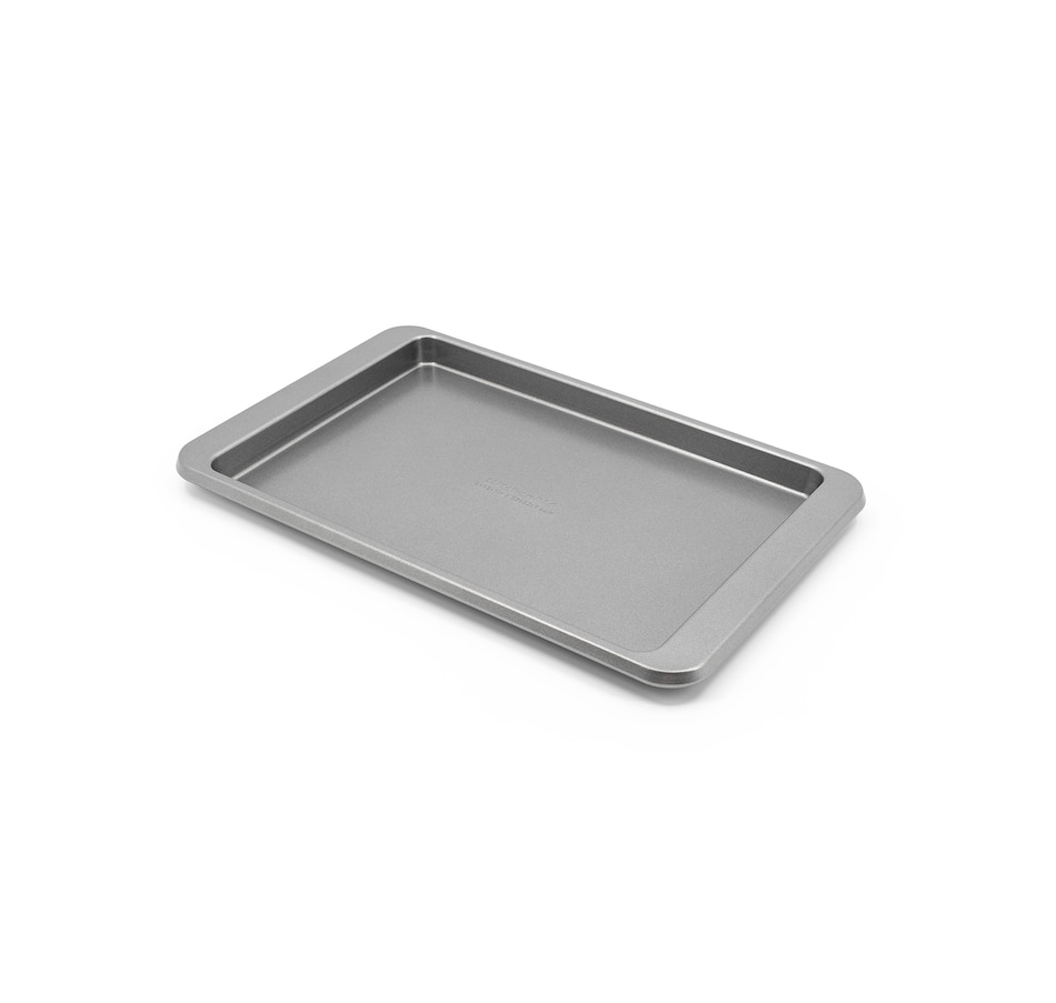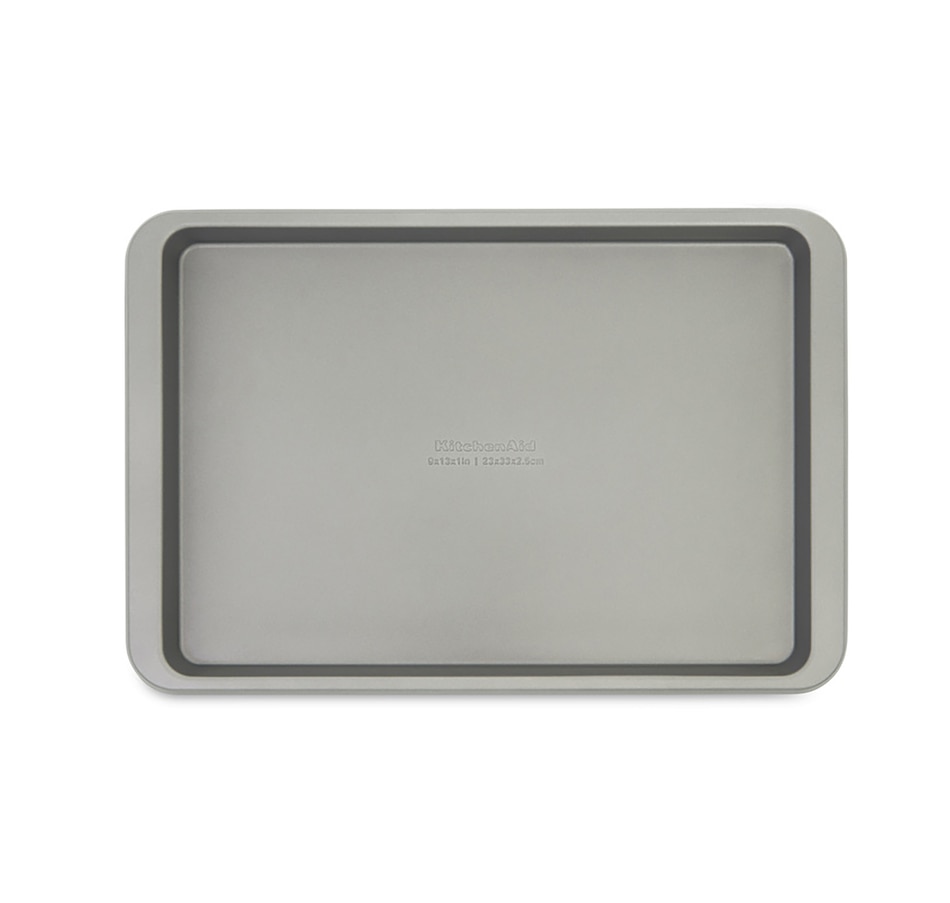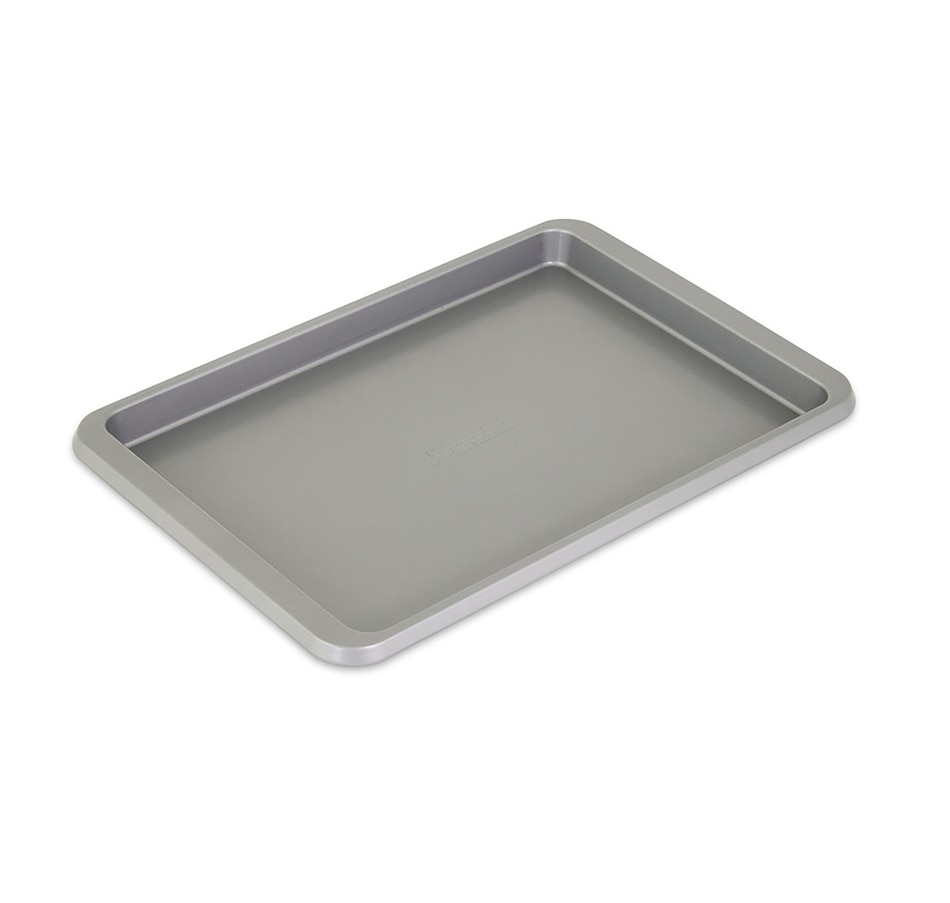 Swiss-engineered heavy-duty coating allows for nonstick release when baking with this sheets from KitchenAid. They're great for everyday baking, from whipping up cookies, bars, jelly rolls, and sheet cakes, to making easy one-pan weeknight meals. The extended handles provide a secure grip for easy transport, making transferring the pan in and out of the oven safer and simpler, even when wearing potholders. The aluminized steel construction promotes consistent heat distribution across the pan, allowing for evenly baked desserts and perfectly roasted dishes.