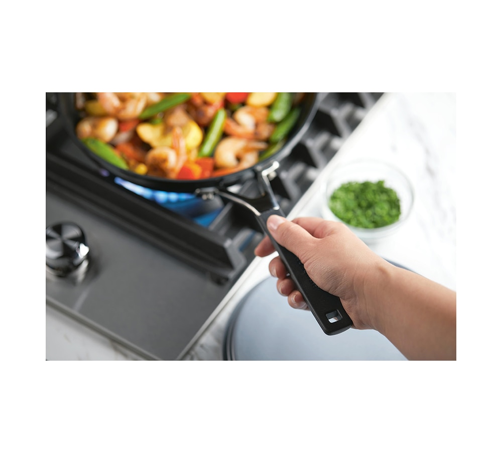 Enjoy crafting meals and signature dishes with the KitchenAid hard anodized non-stick frying pan set. They feature thick, forged aluminum bases to provide quick heat distribution, while thinner side walls allow the pans to remain lightweight and warp-resistant. These 8.25" and 10" skillets have been crafted from durable hard anodized aluminum that is six times harder than traditional aluminum for long-lasting everyday cooking. The interiors and handle rivets have been finished with triple-layer non-stick to effortlessly release foods and keep the pans looking newer for longer. The dual riveted stainless steel handles are finished with silicone grips to remain cooler while cooking, when compared to traditional stainless steel handles. They are oven safe to 400°F for stove-to-oven cooking and creating a wide range of recipes.