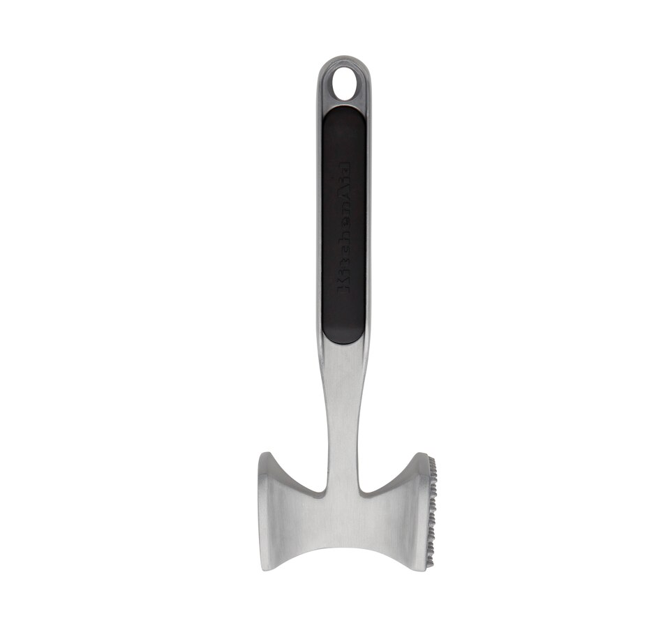This dual-sided metal tenderizer from KitchenAid features a soft, comfortable grip and aluminum construction for durability and strength.