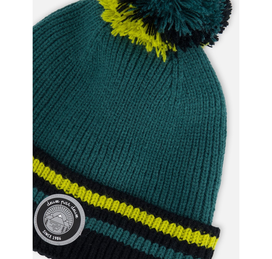 With a warm lining and a fluffy pompom, our Knit Hat Forest Green is equal parts cozy and cute! This winter hat is made from super soft acrylic yarn and features an easy pull-on fit with a front logo patch that adds signature style.