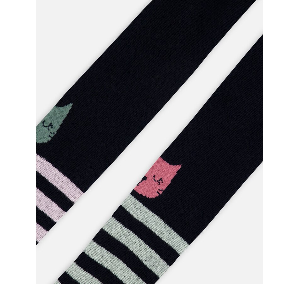 Our Knit Tights Dark Blue are the perfect way to add a dash of fun and comfort to any playful outfit. Crafted from a soft cotton blend with a touch of elastane and knitted for extra stretch, these tights offer a comfy fit that moves with your little one throughout the day. With each leg featuring different color stripes and adorable printed cats on the knees, they bring a cheerful, whimsical touch to any look, making them a must-have for every day of the week.