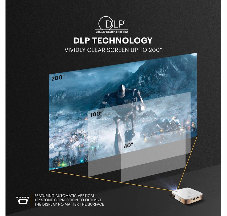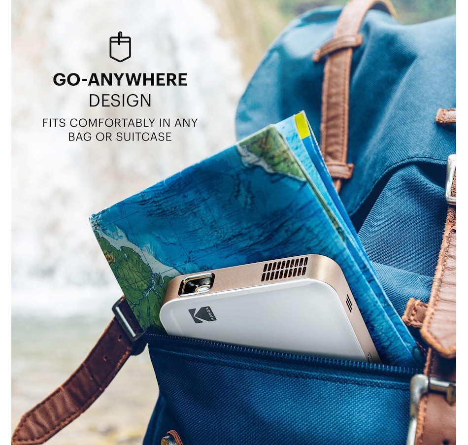 A cinema in the palm of your hand With the KODAK Luma 350 Portable Smart Projector, cinema-quality imaging is at your fingertips. The miniature portable projector uses every popular media option in todays market, boasting onboard Wi-Fi, Bluetooth, mobile-to-screen mirroring, USB, and HDMI hookups for comprehensive compatibility. Using the projector with Wi-fi and Bluetooth's mobile control options, users can browse the internet, stream Netflix and Hulu, and access other popular games and content, all directly through the Bluetooth projector without the need for an external device. This projector portable will transport you to the fantasy world of your choice with a booming 1.5 W speaker and dazzling 16.7 million color display. Whether you watching movies at home, leading a meeting at the office, or delivering a keynote address in front of hundreds of people, the small projector lens powerful 350-lumen lamp projects images with exceptional brightness. Set up the outdoor mini movie projector on a flat surface either indoors or outdoors. Just plug the video projector, play, and experience a pocketful of possibilities. So say goodbye to the cramped & gather round, and wow a crowd by adding the Kodak Luma 350 Mini Projector with Wi-fi and Bluetooth to your cart today! Wi-fi projector offers stunning color, clarity, LED-Lumen brightness & massive display up to 150”Utilizes breakthrough digital light processing technology to render HD video & imaging Device features easy-to-use light-up touch controls, manual focus, audio output & remote control