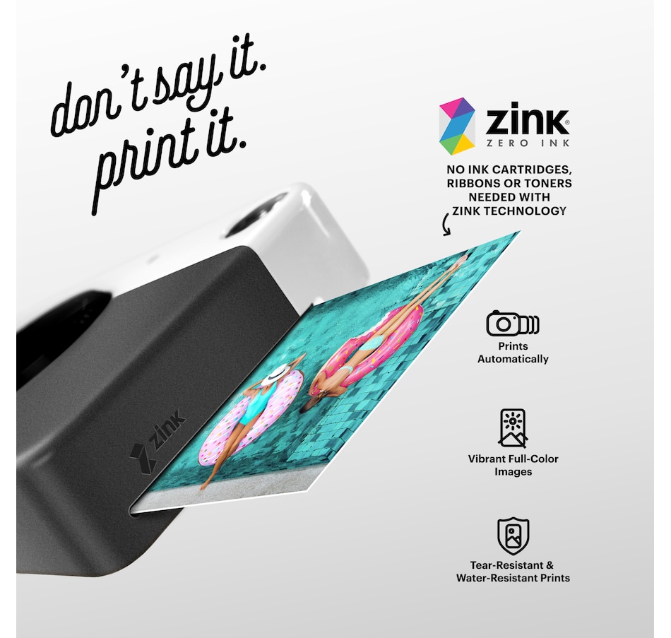 - Zink Zero Ink Technology eliminates the need for expensive cartridges, messy ribbons, or toners