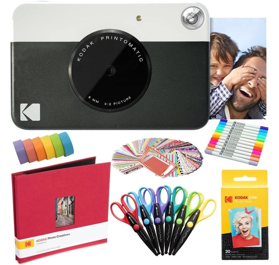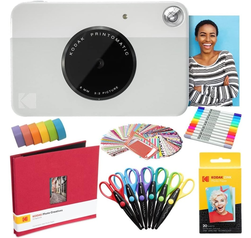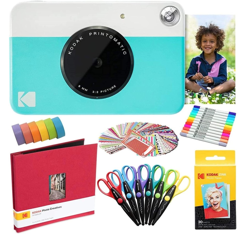 • The kit also includes 20-pack of Zink paper, scrapbook album, scissors, tape, markers, and stickers