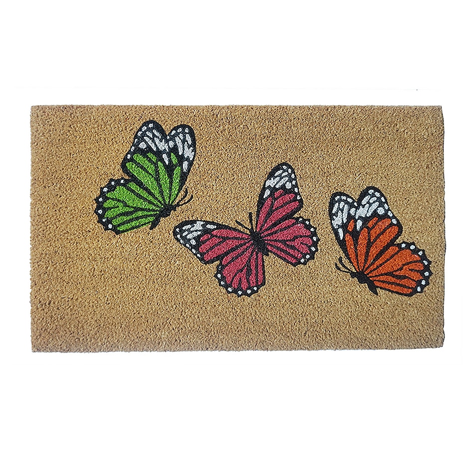 Greet your guests to your home with this adorable butterfly doormat. Accented with green, pink and orange butterflies, this indoor/outdoor mat is made from natural coir (coco) fibres to help remove dirt from footwear.
