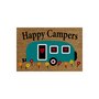 Greet your guests to your home with this attractive Happy Campers doormat. This indoor/outdoor mat is made from natural coir (coco) fibres to help remove dirt from footwear.