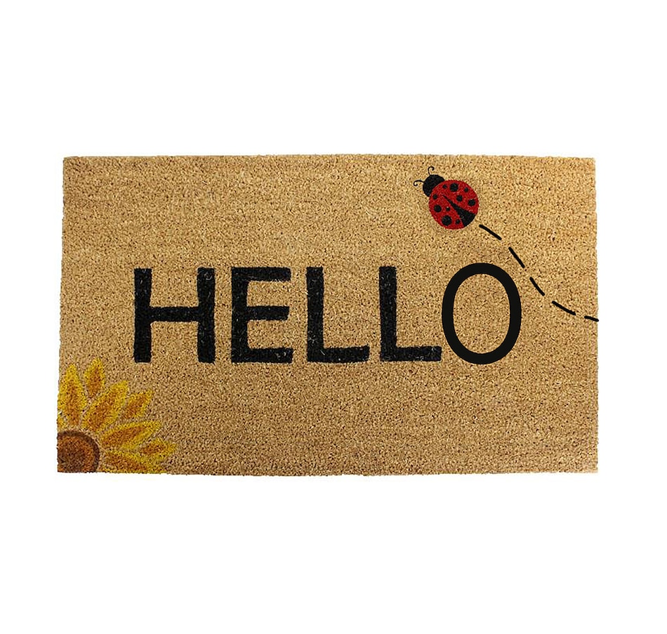 Greet your guests to your home with this adorable Hello doormat. Accented with a bright red ladybug, this indoor/outdoor mat is made from natural coir (coco) fibres to remove dirt from footwear.