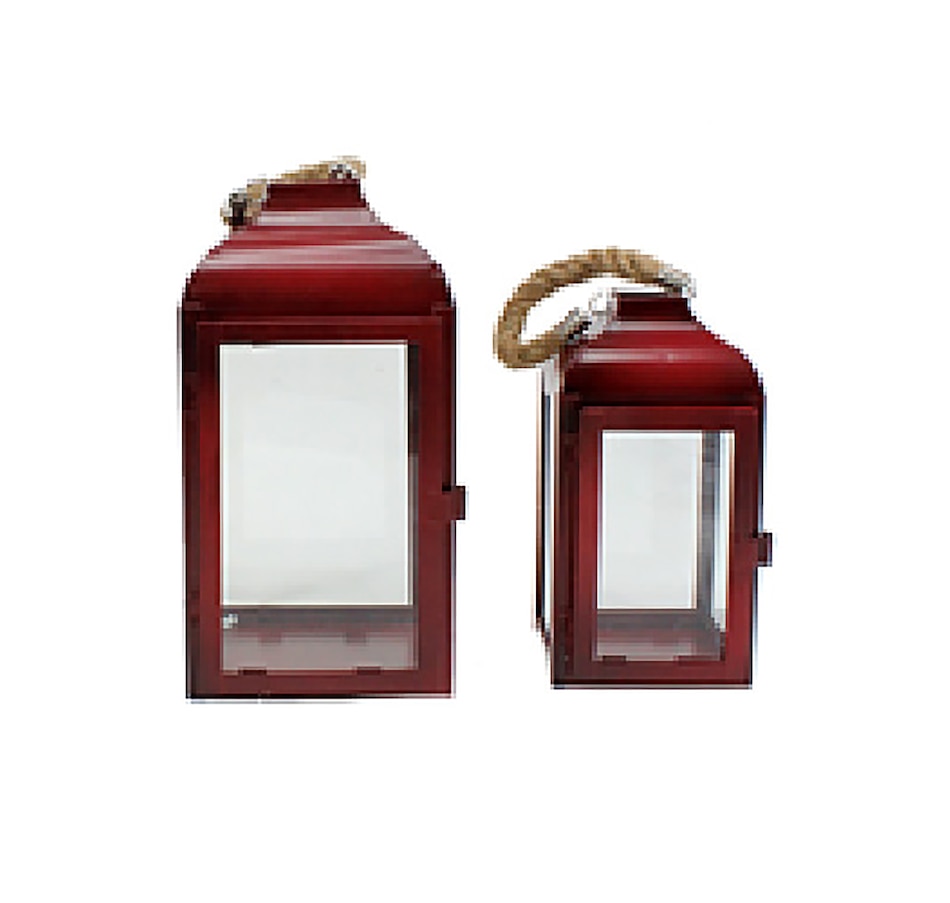 Beautifully illuminate your space with this set of two red metal lanterns. These stylish additions bring warmth and ambiance to any indoor or outdoor setting.