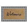 Enhance your entryway with this welcome door mat, featuring a stylish black and white plaid border. It’s the perfect blend of classic charm and warm hospitality.