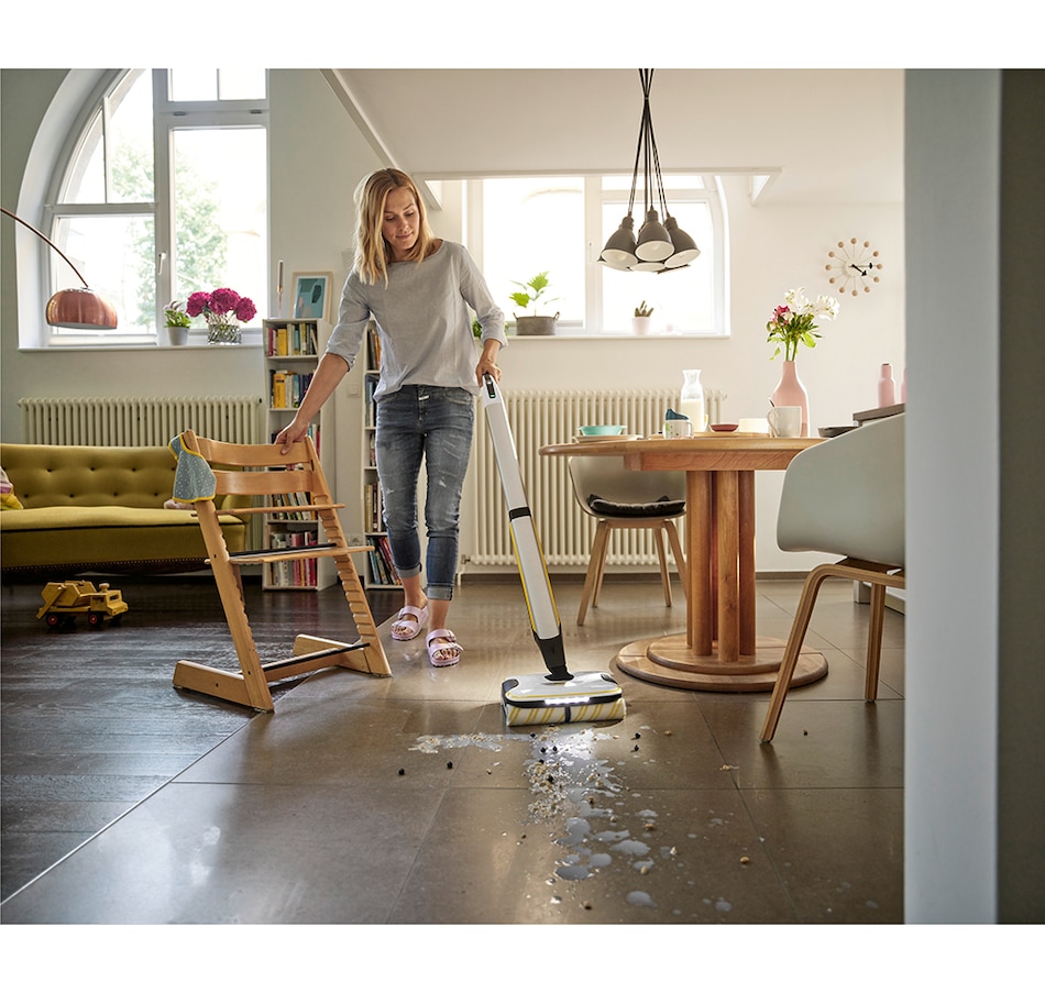 • The FC 7 effortlessly cleans right up to the edges of walls, stairs, corners, and baseboards. A flexible hinge on the cleaning head allows the device to clean under furniture and around small objects