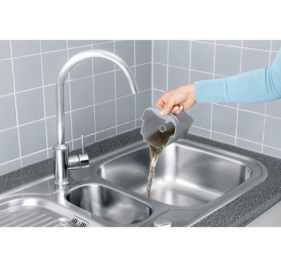 • With the dual tank system, fresh water and detergent is applied to the rollers of the FC 7 from one tank, while dirty water and light debris is suctioned away from the rollers into a separate dirty water tray