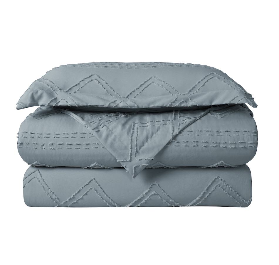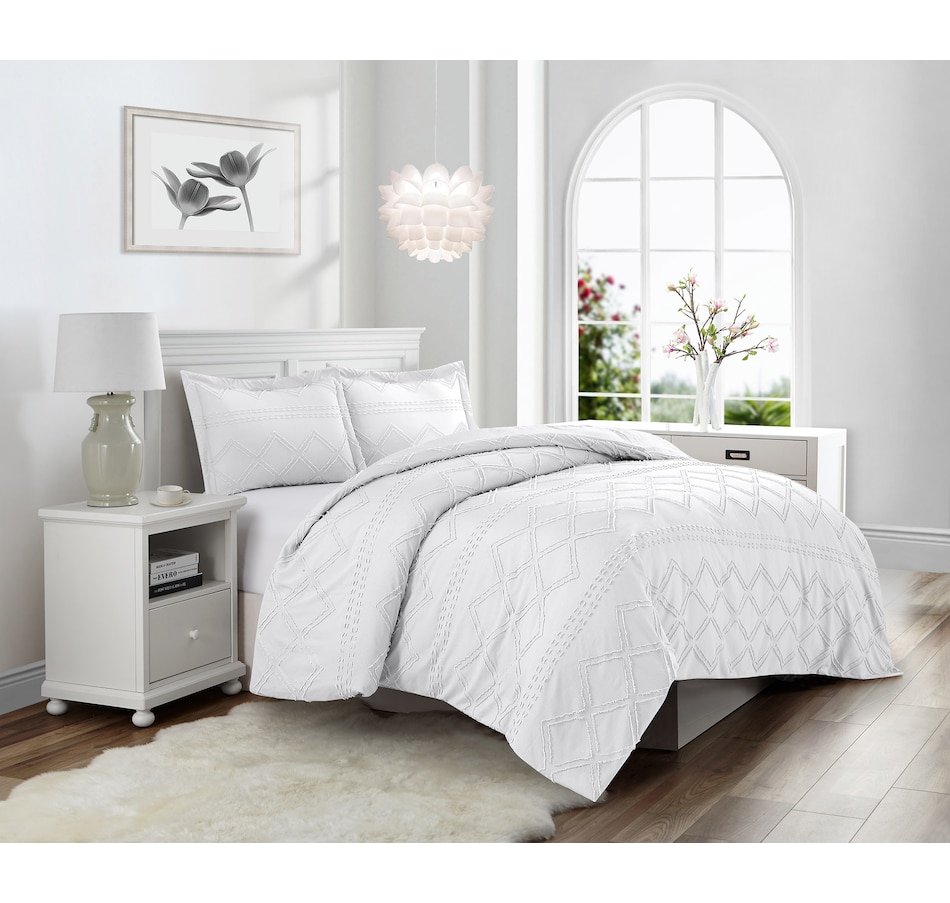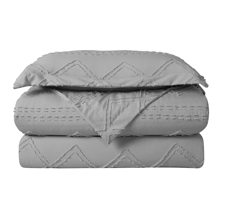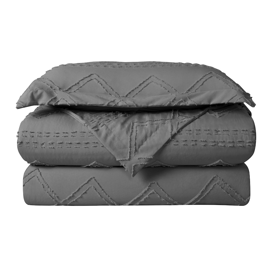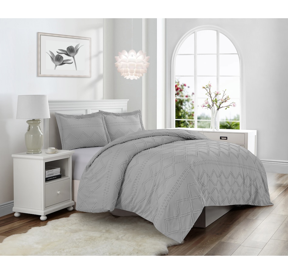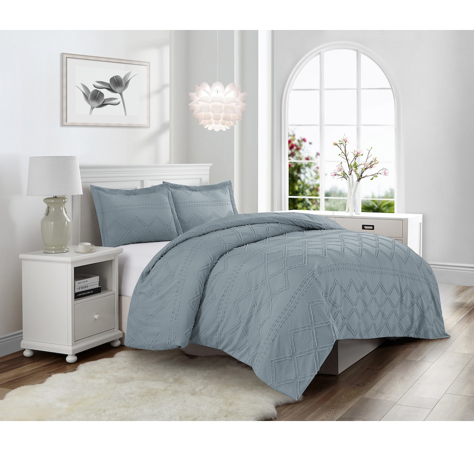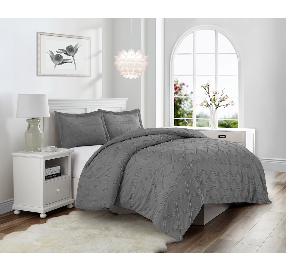 Give your bedroom a chic update with the Diamond prewashed duvet cover set. The clipped frayed jacquard design is ideal for anyone who desires a textured look, and easily pairs with any décor scheme. This set is made with the highest quality microfibre, making it long-lasting and incredibly soft. The coordinating sham, complete with flange trim, beautifully complements the duvet cover’s intricate design for a cohesive look. A convenient zipper closure at the foot end makes for easy insertion and removal of a duvet insert (insert not included).