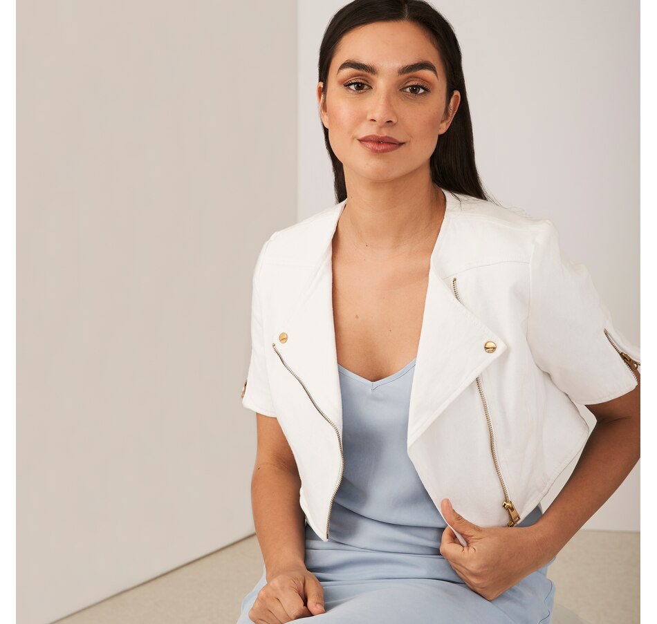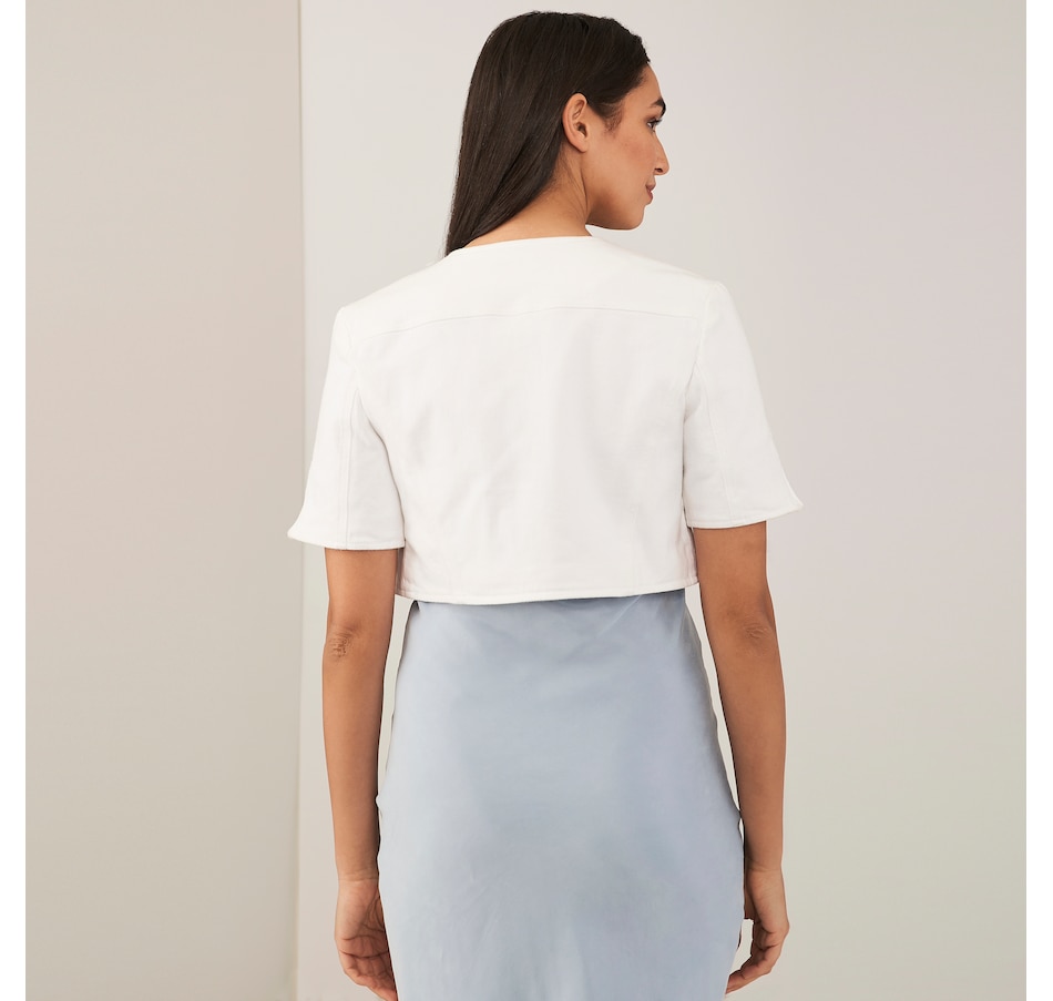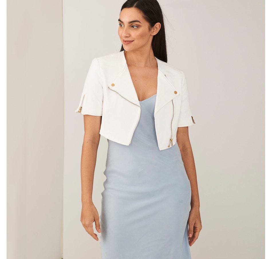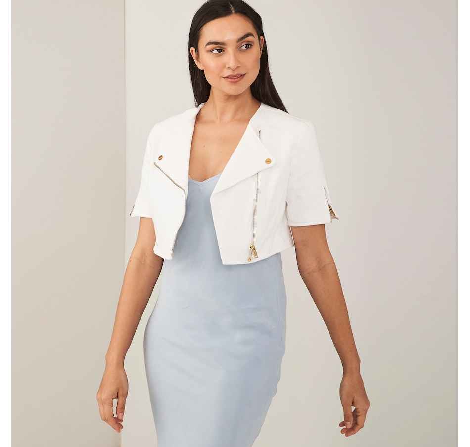 • Short sleeve, zipper closure, pockets, lined, semi-fitted