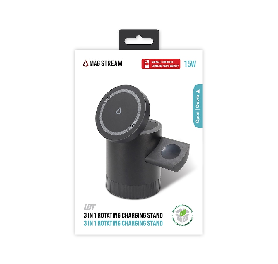 Experience the ultimate convenience and style with the LBT Mag Stream 3-in-1 Rotating Charging Station. It can charge your phone, watch and earbuds all at the same time!