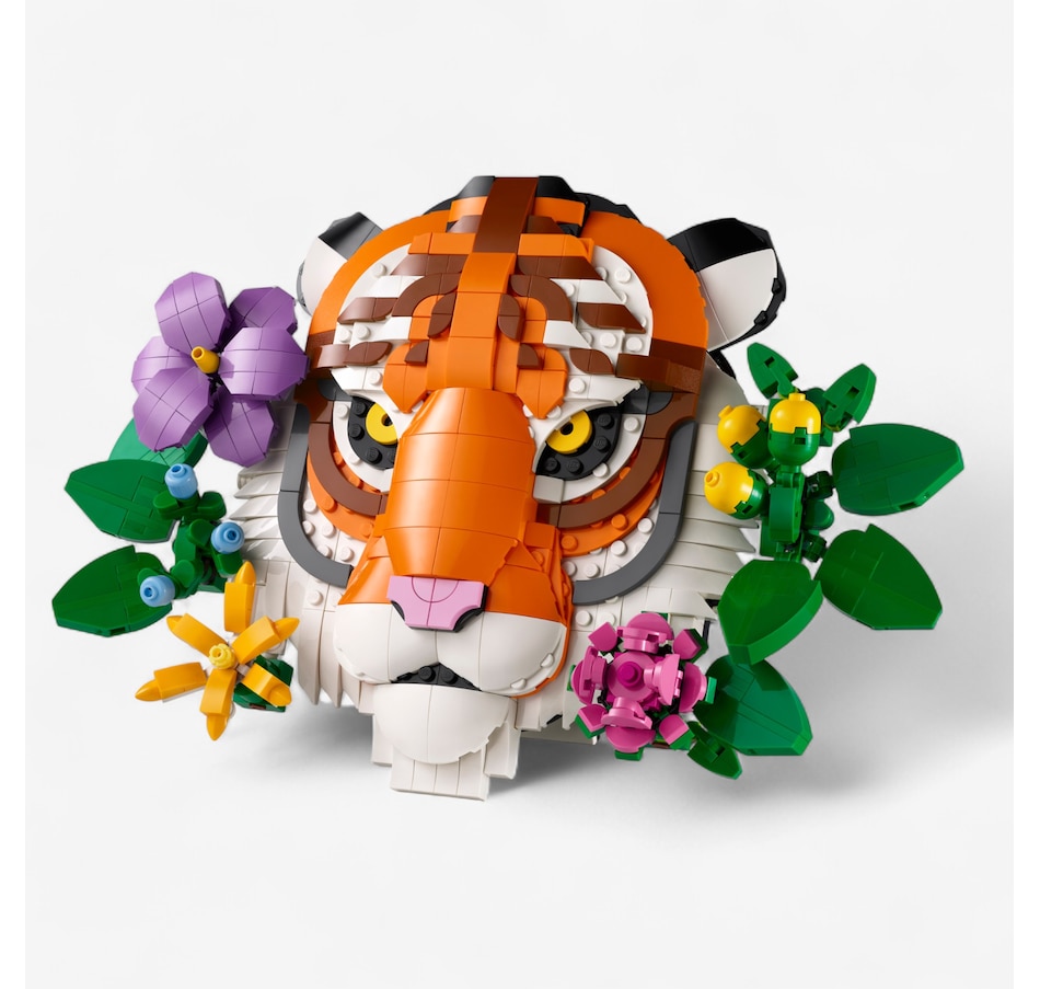 This wildlife decor depicts a beautiful tiger peeking through a collection of decorative flowers and plants. You can hang it on your wall or use its built-in stand to display on a table or shelf. The flowers are all customizable and can be moved into different positions, or you can add other brick-built flowers from some of the sets (sold separately) in the LEGO Botanicals collection.