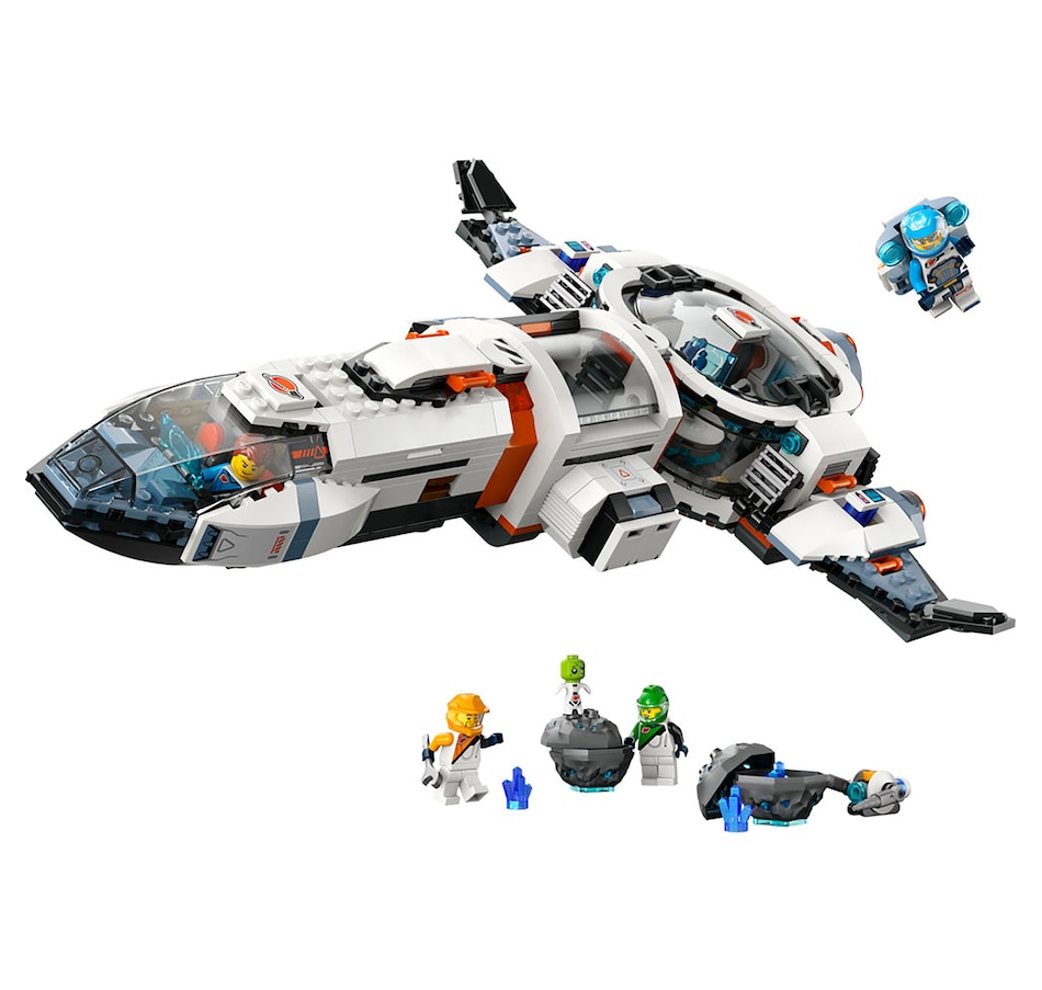 Space enthusiasts aged 7 and up can embark on epic interstellar adventures with the LEGO® City Modular Galactic Spaceship (60446) outer space toy for kids. This long-range exploration toy spaceship features a versatile modular structure, allowing kids to reconfigure it into a space shuttle and a land base with a lab, medical bay and kitchen. Kids can analyze meteorites and explore new worlds together with a space crew comprising four astronaut minifigures, plus alien and driller robot figures.