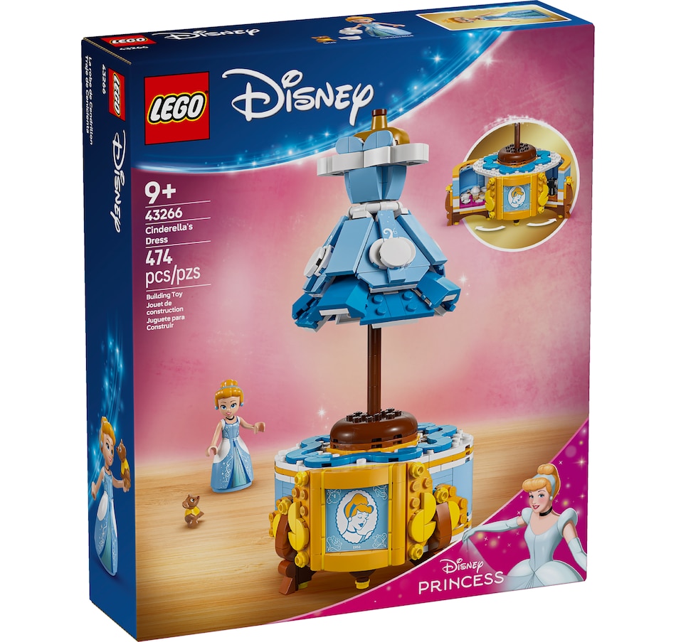 Celebrate fashion and 75 years of Disney’s Cinderella with fans aged 9 plus. This Cinderella’s Dress (43266) LEGO® Disney Princess building kit features a dress, a dress stand and a display stand with hidden surprises. There’s also a LEGO Disney mini-doll character and LEGO Disney mouse character for fun play adventures. The buildable toy set includes elements to decorate the display stand and a profile tile of Cinderella.