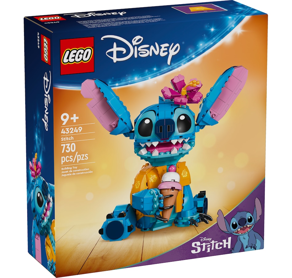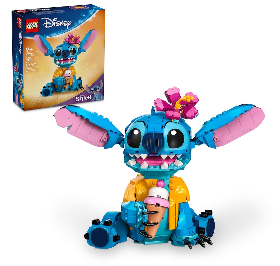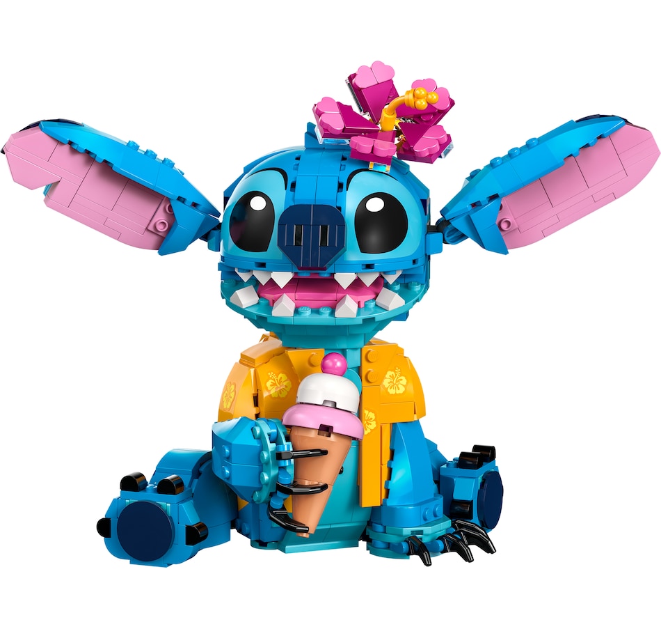 Appeal to older kids and Lilo and Stitch fans aged 9 with this LEGO® Disney Stitch (43249) buildable play-and-display set, featuring a Stitch character. The incorrigible extraterrestrial from the hit Disney movie, dressed in a Hawaiian shirt, has movable ears and a turning head, a buildable ice-cream cone that the character can hold and a buildable flower that can be added or removed.