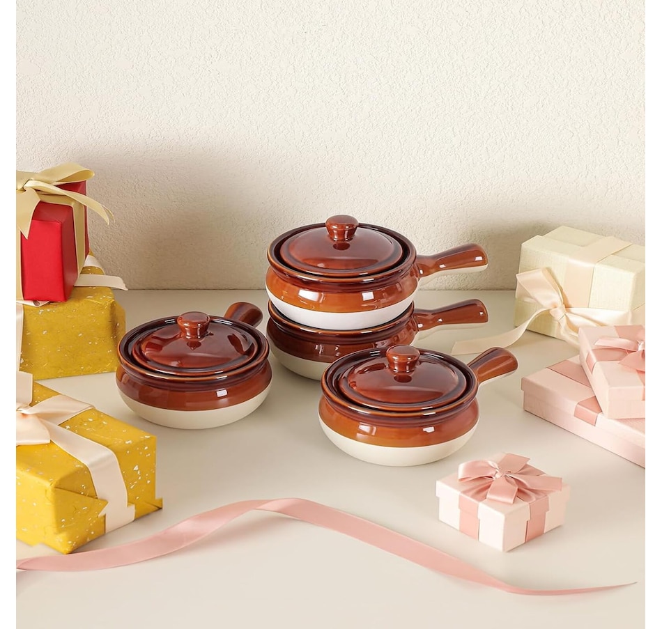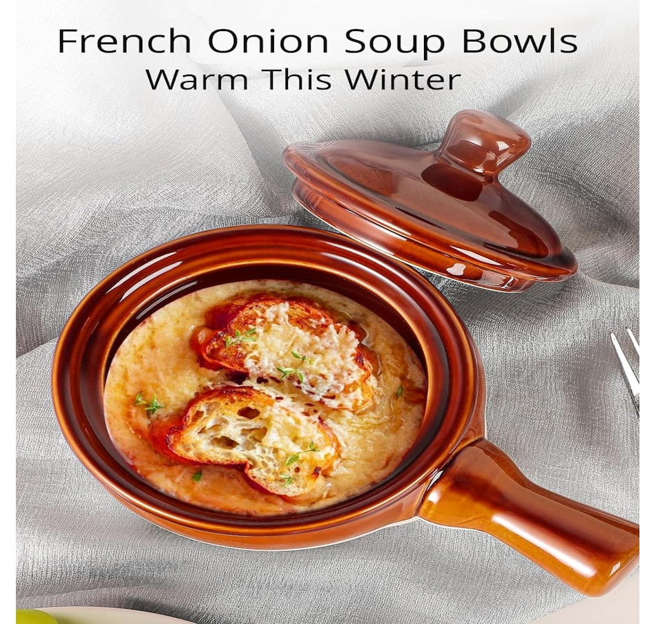18 oz French Onion Soup Bowls & Crocks, Oven & Dishwasher Safe, Set of 4