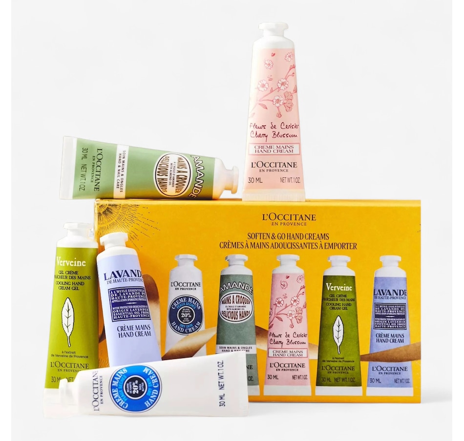 This comforting set features iconic L’Occitane hand creams in five classic scents, Shea Butter, Almond, Verbena, Lavender, and Cherry Blossom, delicately fragranced for everyday indulgence.