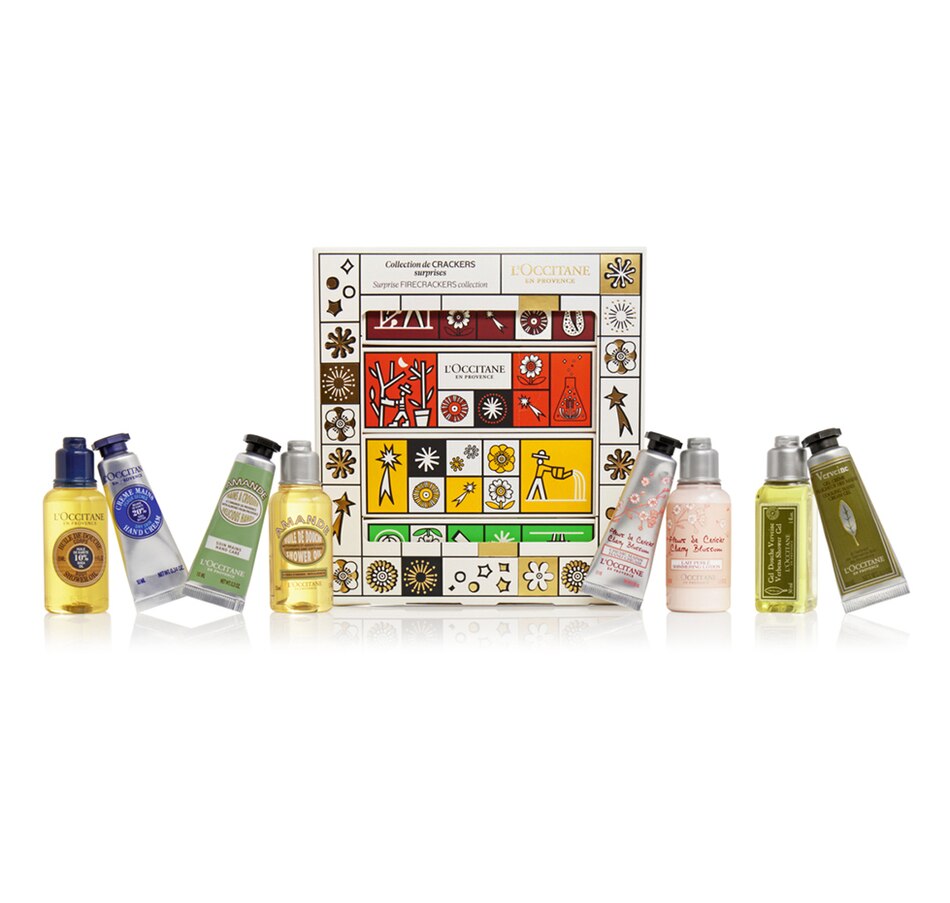 Perfect for handing out to friends and family, each cracker holds a travel-sized shower essential and hand cream from one of four iconic collections: Verbena, Almond, Shea Butter, and Cherry Blossom.