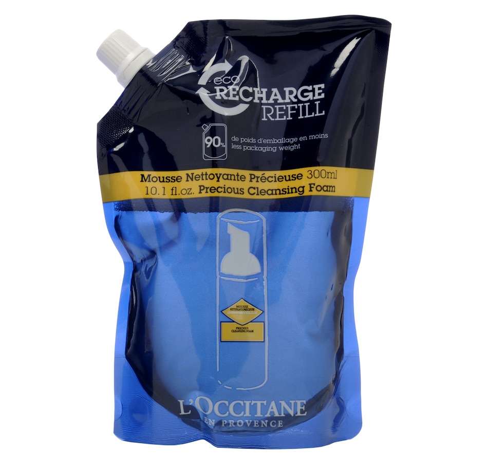Reduce, reuse and refill! This is a gentle face-cleansing foam from L'Occitane in an economical, ecological refill package, to help keep the skin clean and fresh with a younger-looking effect, and to help preserve the environment.
