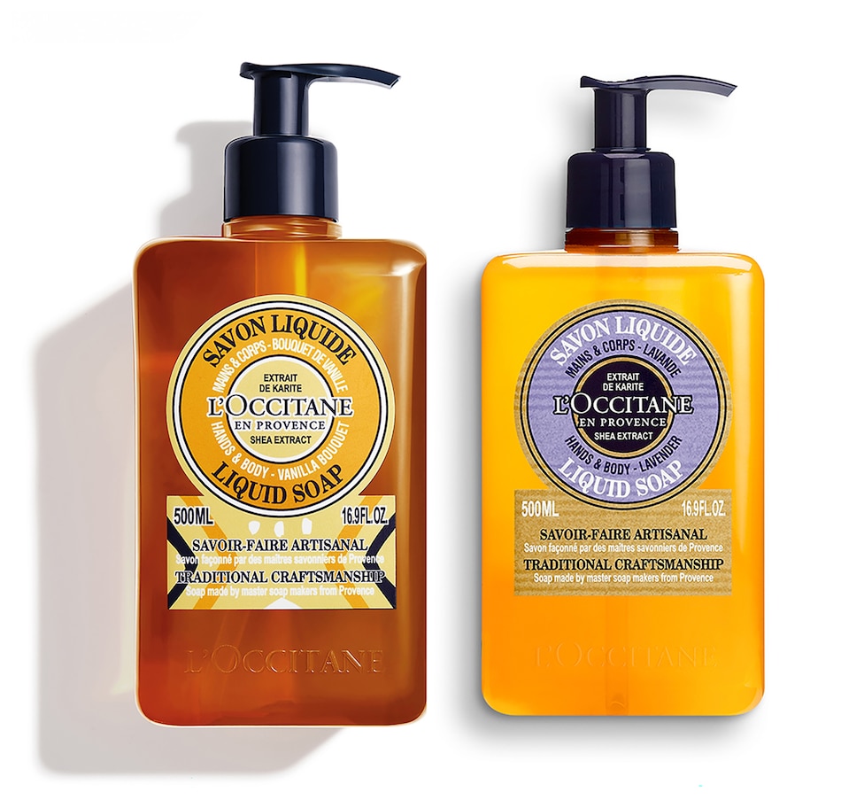This is a liquid soap duo, featuring L'Occitane's Shea Vanilla Liquid Soap and Shea Lavender Liquid Soap.