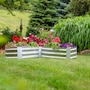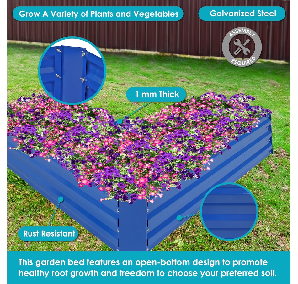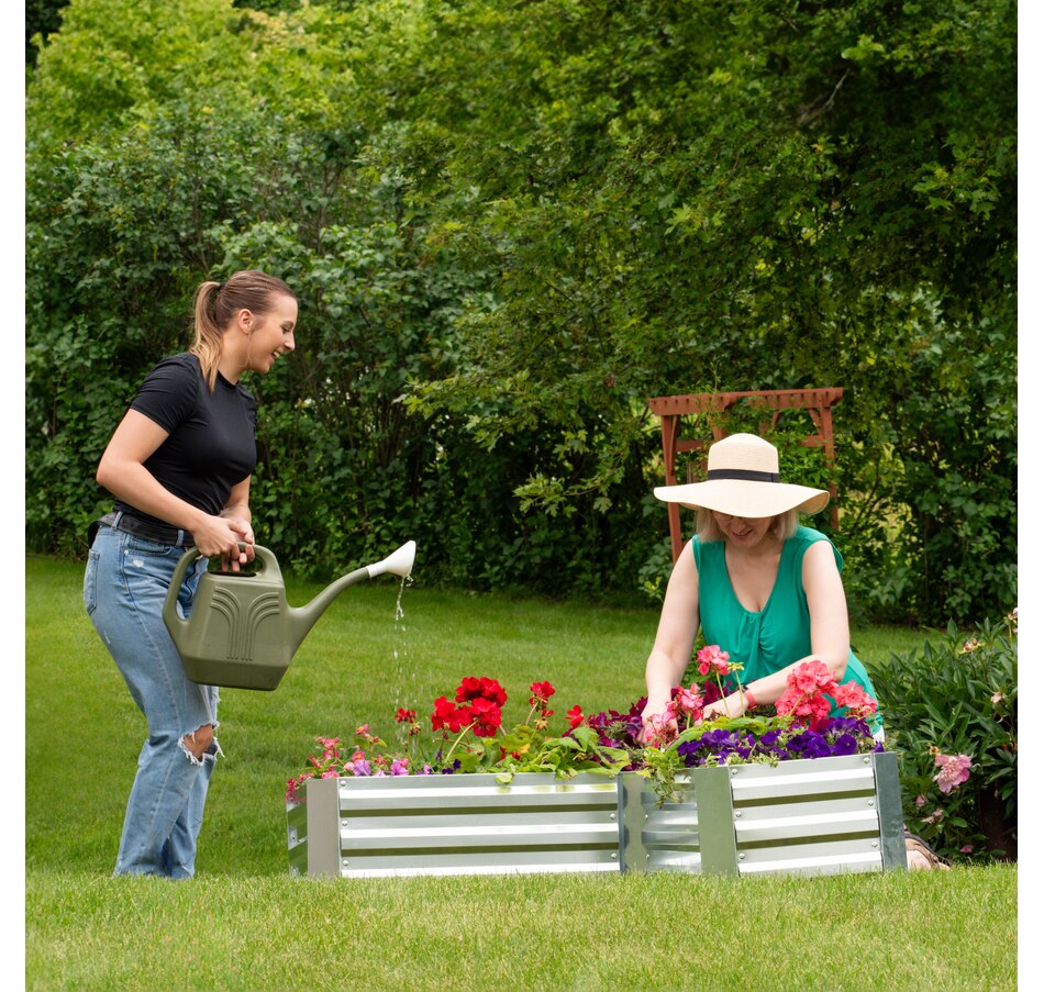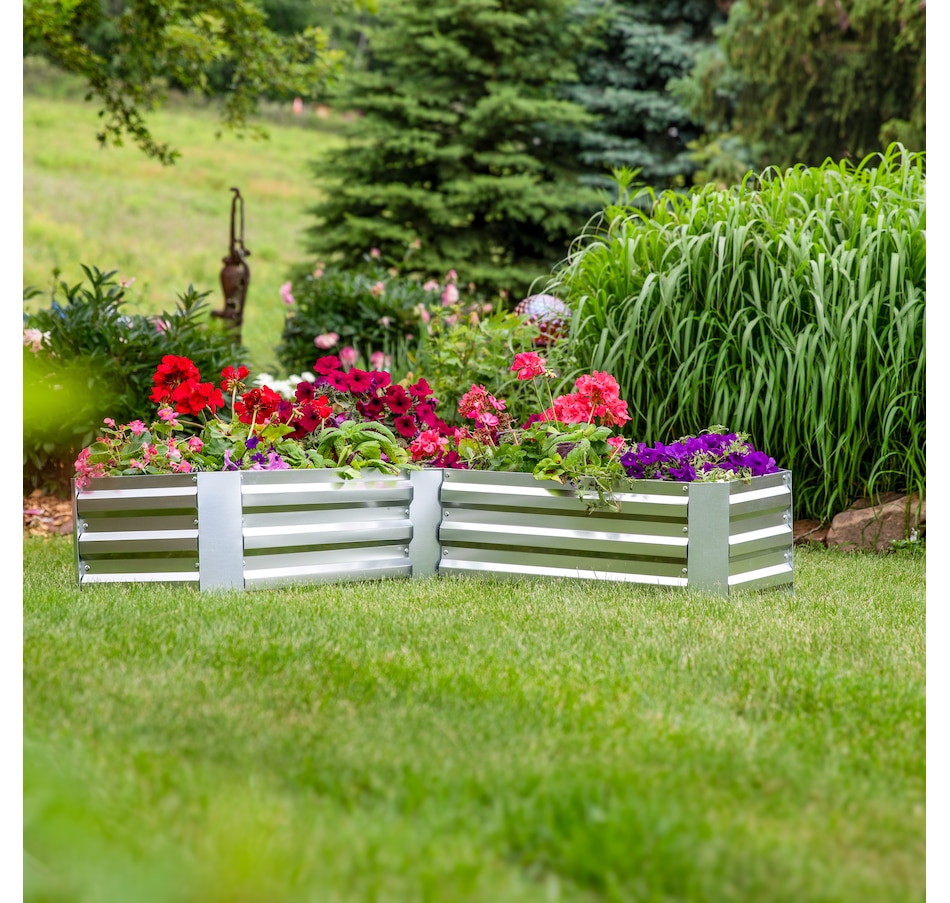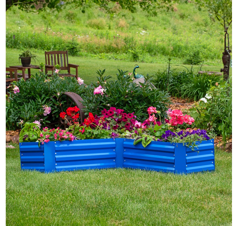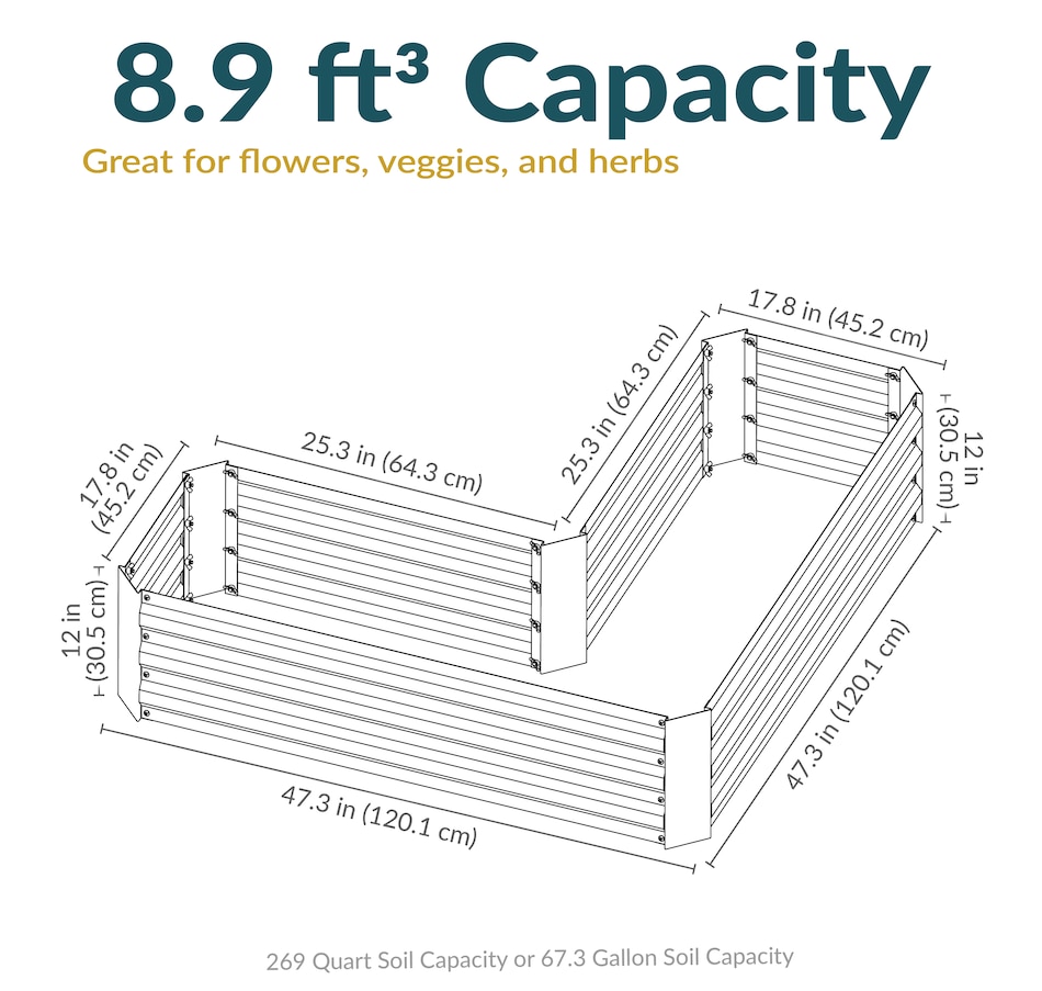 This elegant yet durable L-shaped steel garden bed is a wonderful addition to any outdoor space. This raised metal garden bed provides a number of benefits for a variety of plants. The bottomless design allows proper drainage for improved root health, and the bed can be filled with whatever type of soil is best for specific plants to create an optimal growing environment. This stylish garden bed features a unique L-shaped design that makes it great for placing in the corner of a patio or garden. This sturdy raised garden bed is made of durable galvanized steel for lasting strength and beauty season after season. This sophisticated raised garden bed is a beautiful centerpiece for the backyard, garden, or patio.