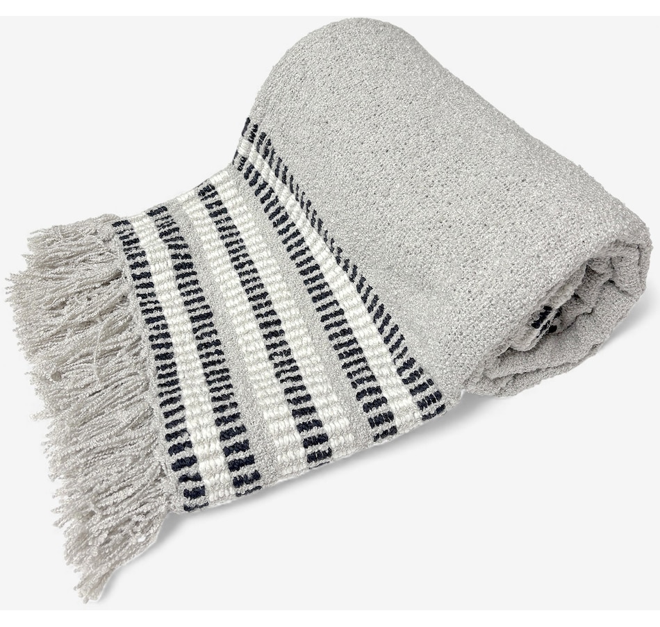 Bring a touch of artisanal craftmanship and effortless style to your space with this hand-woven 50" x 60" throw. It features a stylish fringe around its border and intricate black and white stitched detailing across the top and bottom. Whether it's for the bedroom, couch or anywhere else in your home, the Maximus fringe throw will elevate its surroundings with stylish ease.