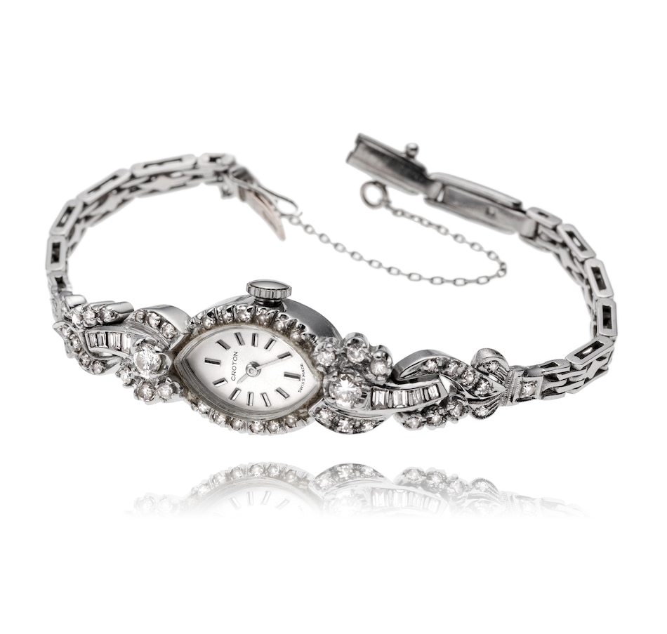 Lady's 14KT White Gold CROTON Swiss Made Diamond Wristwatch