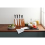 • The premium Acacia wood block provides an elegant look while strong magnets integrated into the block secure the knives in place