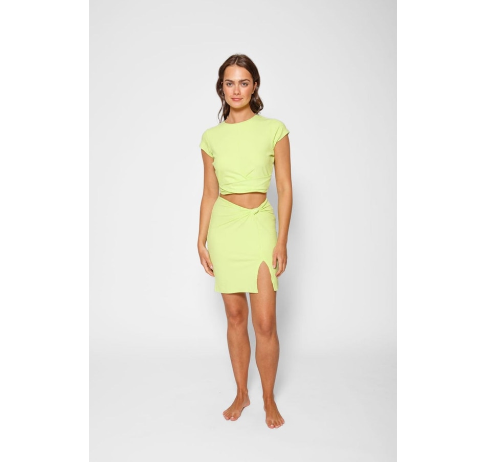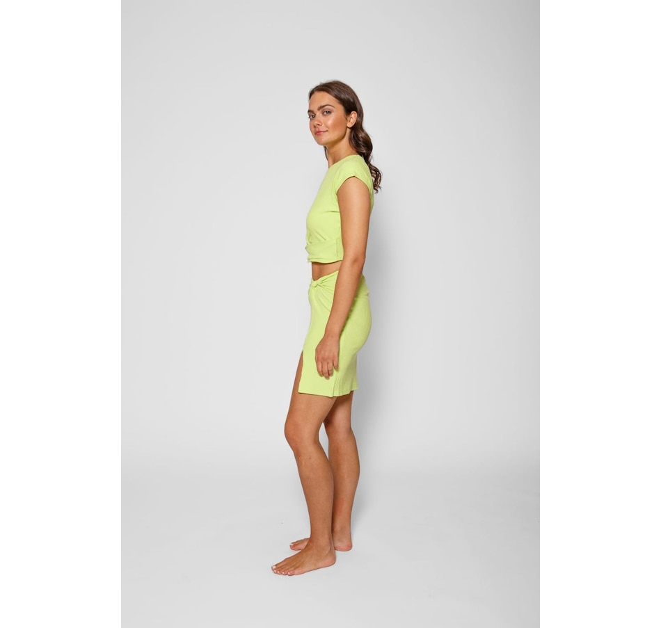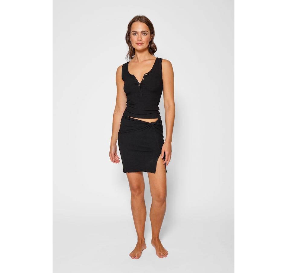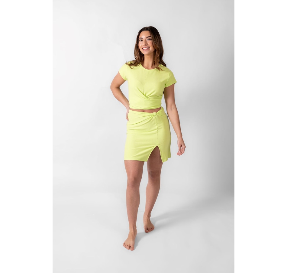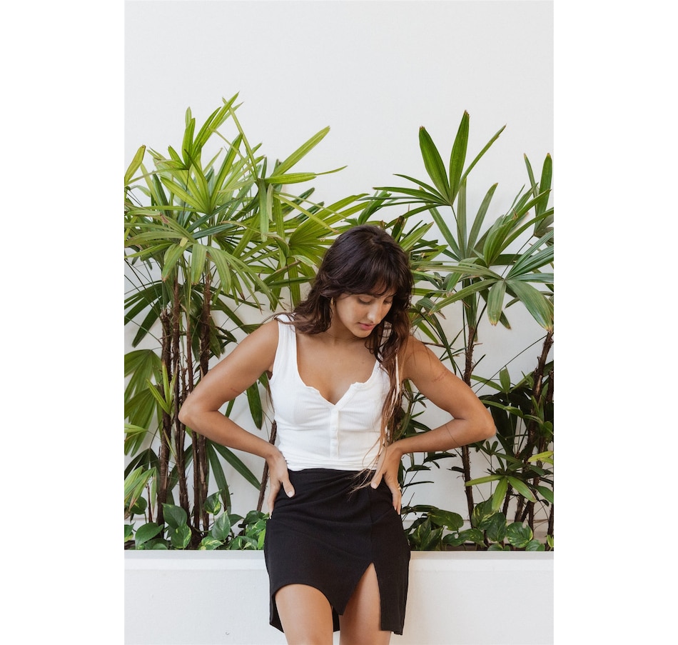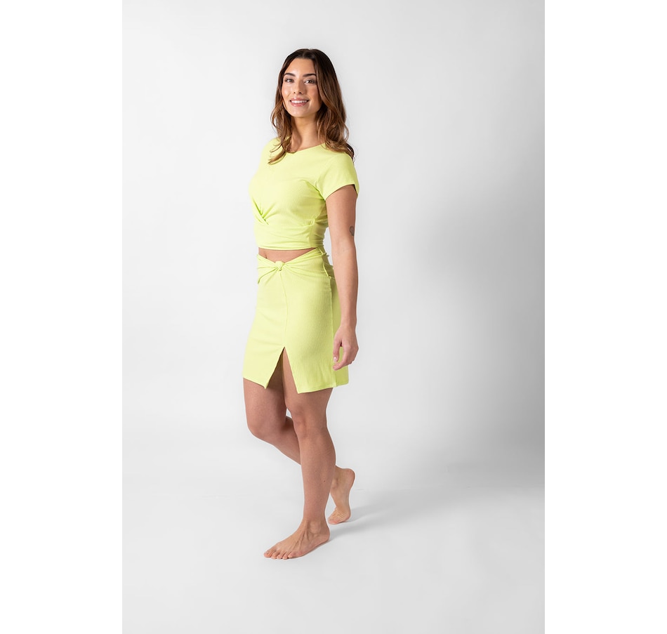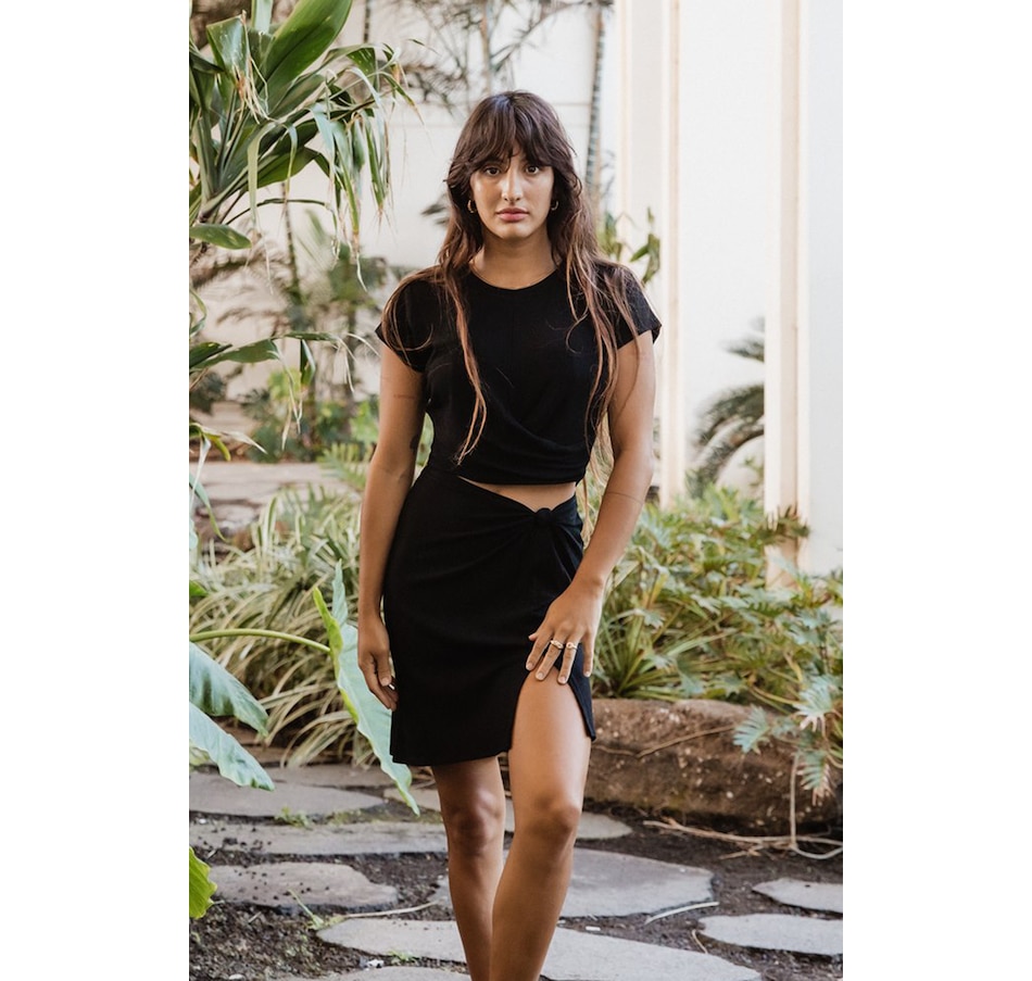 Take your vacation vibes up a notch with this Laguna Rib Mini Skirt. With a chic ribbed fabric, figure-flattering fit, and a side knot, you'll turn heads all summer long – not to mention, the slit and elastic back provide a perfect mix & match of style and comfort. Pair with the Laguna Rib Knot Crop Top for the ultimate beach to street look