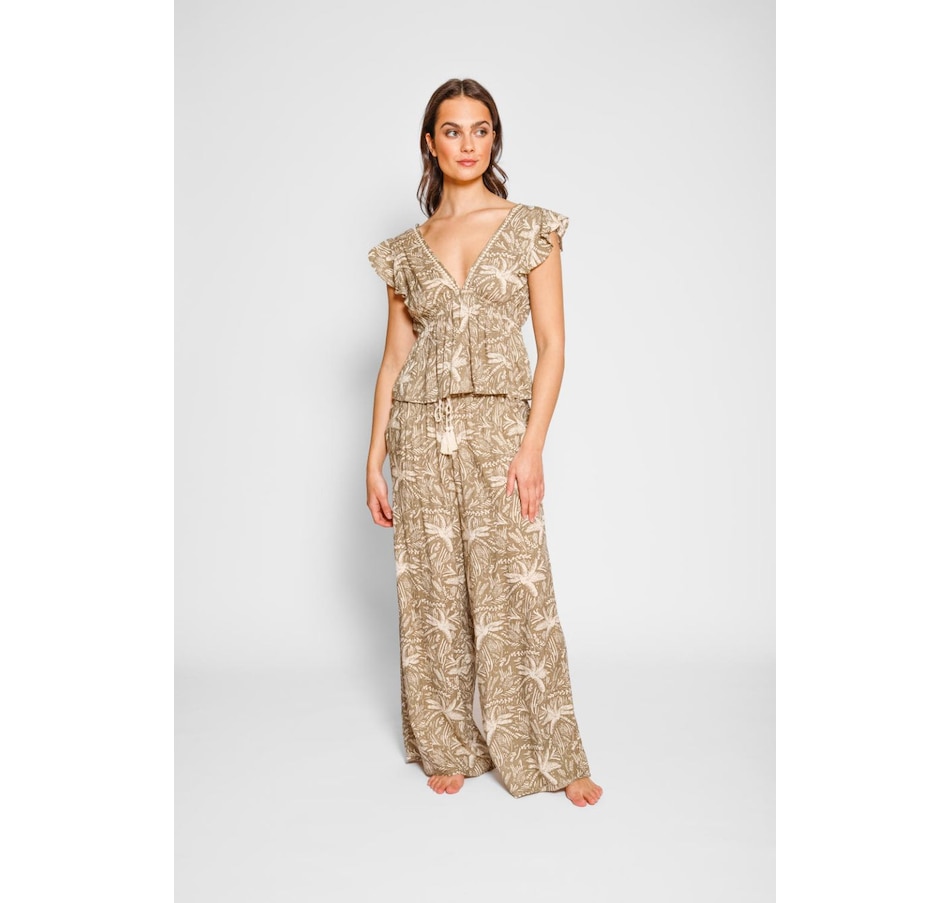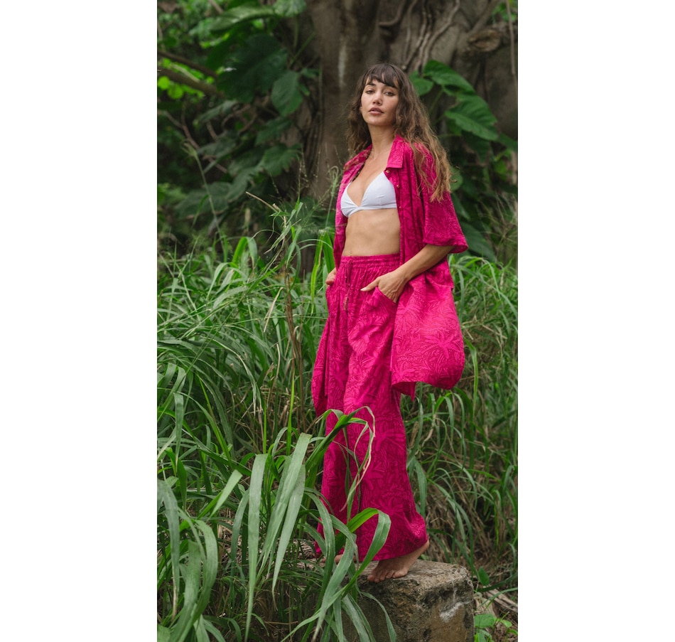 Introduce a playful element to your wardrobe with Las Palmas Pants. Featuring a wide leg design, adjustable waistband, and a playful palm tree print, these pants are both versatile and comfortable. Made from soft and breathable rayon fabric.