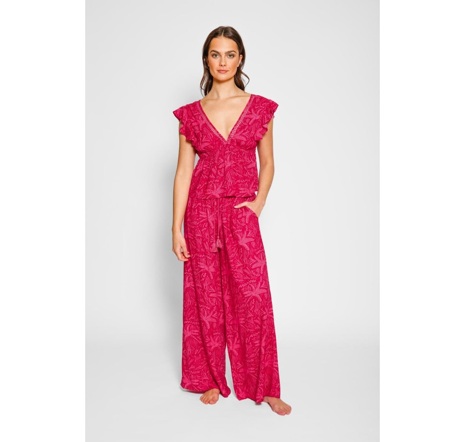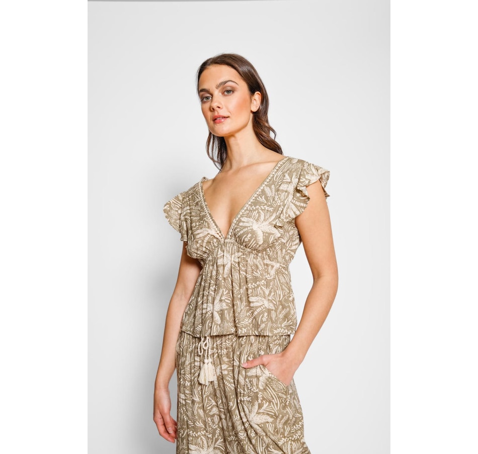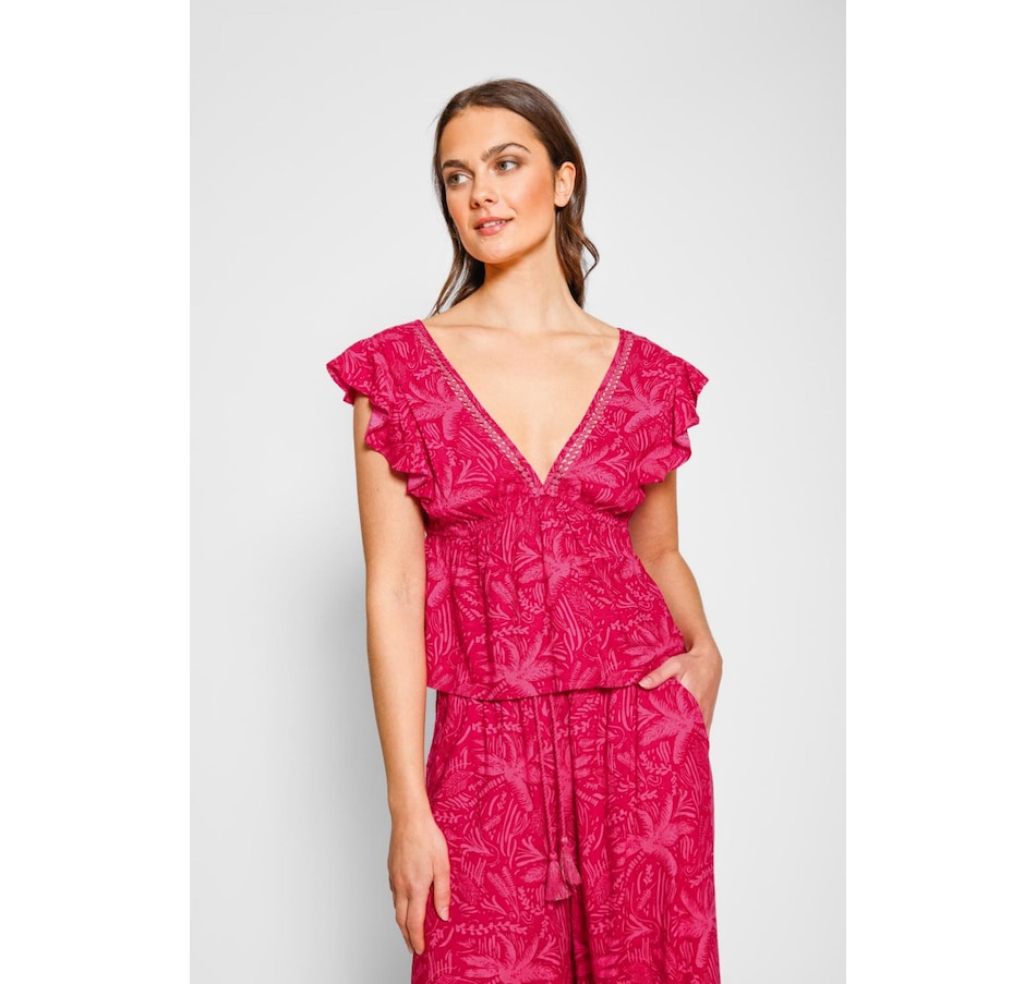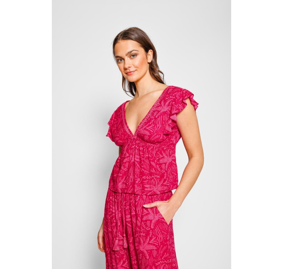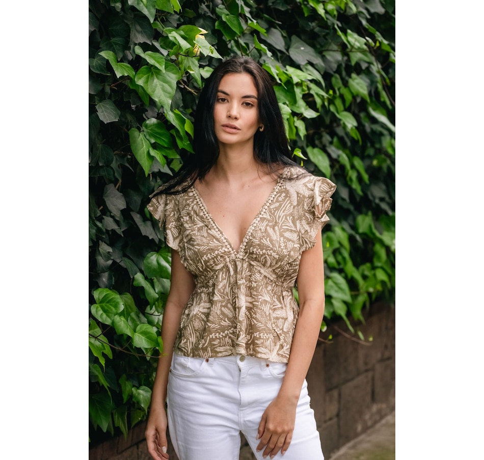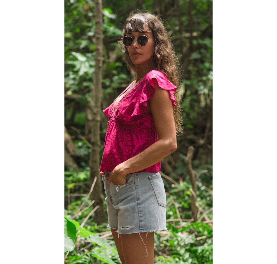 Introducing the Las Palmas Top - a versatile and beautiful piece that can easily be dressed up or down! Made from luxurious rayon fabric, this top features the stunning Las Palmas print that is inspired by the graceful movement of palm trees in the wind. Perfect for any occasion!