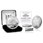 This is an exact replica of the coin used for the official coin toss by the referee at Raiders 2024 home games. You can own a copy of the same coin that measures 39mm in diameter and minted with a fine silver plating finish. The coin is die struck with the team helmet on the obverse and the Official Game Coin call out on the reverse. Each team's 2024 coin is available in a limited edition of only 5000 and officially licensed by the NFL. The coins are individually numbered on the edge, protected in a clear capsule to preserve its condition, and accompanied by a certificate of authenticity. This product is proudly made in the USA by The Highland Mint!