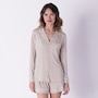 Elevate your downtime with something special wearing this notch collar PJ short set from Latte Love.