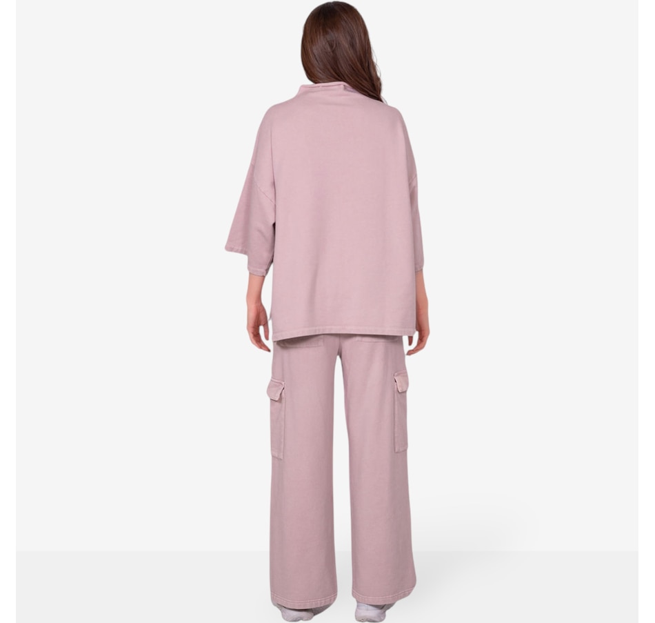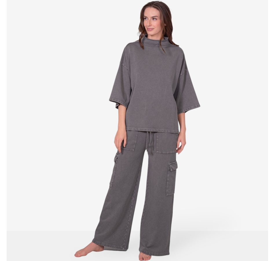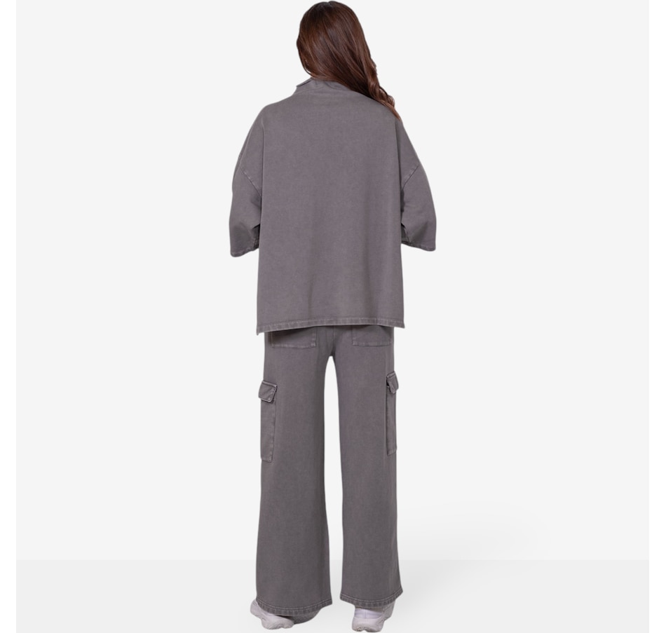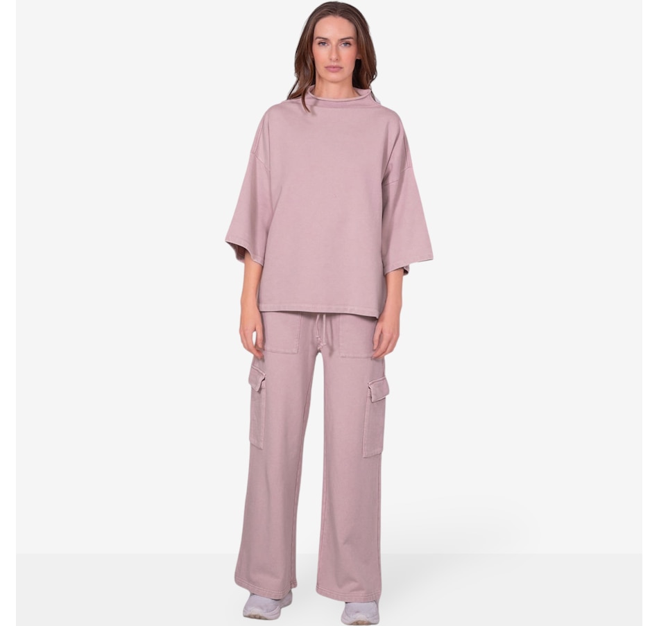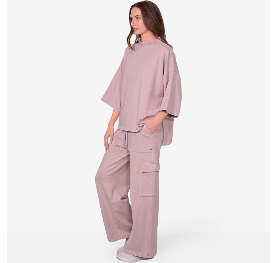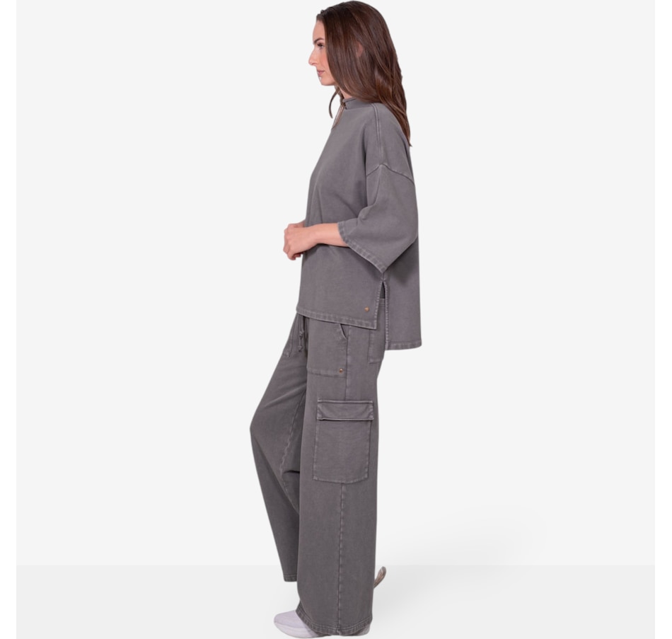 Comfortable and versatile, you'll add to your casual look in easy style with this wide leg cargo sweatpant from Latte Love. Please note, this garment has been dyed for a unique look and each piece is one of a kind. Slight variations in colour and shading may occur. Please wash separately to avoid colour transfer.