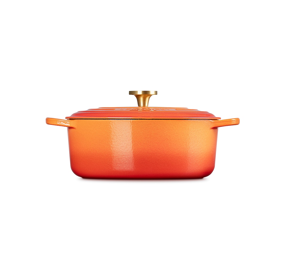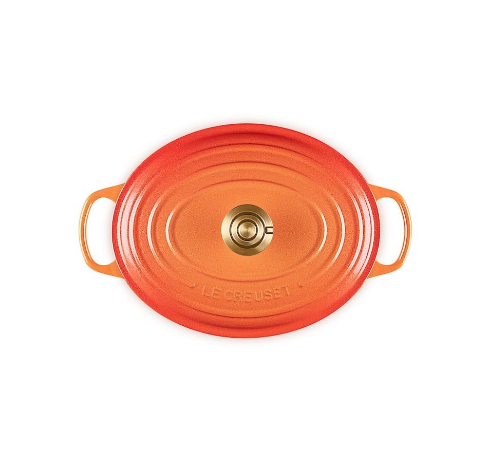 One hundred years after introducing the heritage colour that ignited it all, Le Creuset’s eternal flame just became brighter. Flamme Dorée ("Golden Flame") strikes a perfect balance between rich tradition and modern innovation. This reimagined classic features a fresh, glistening sheen and an iconic stainless steel crucible knob with a light gold finish. Vibrant, familiar, and globally recognizable, this celebratory hue pays tribute to the past while illuminating the path to the future.