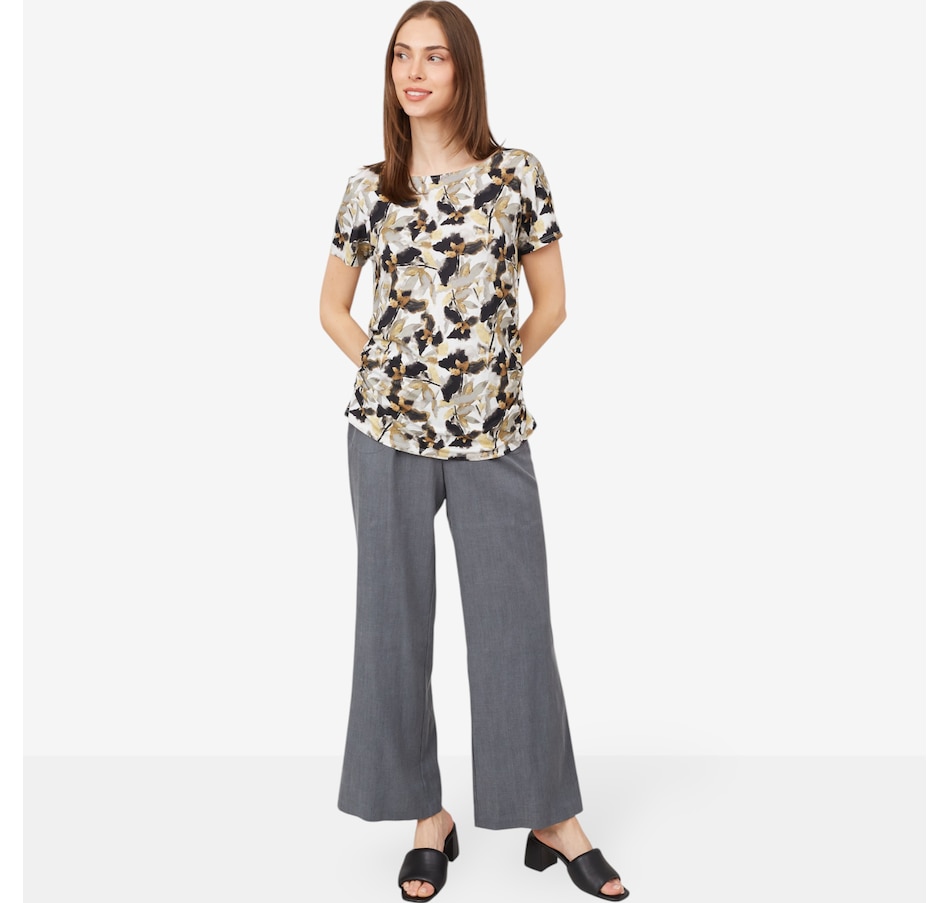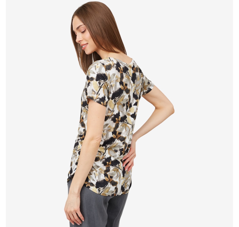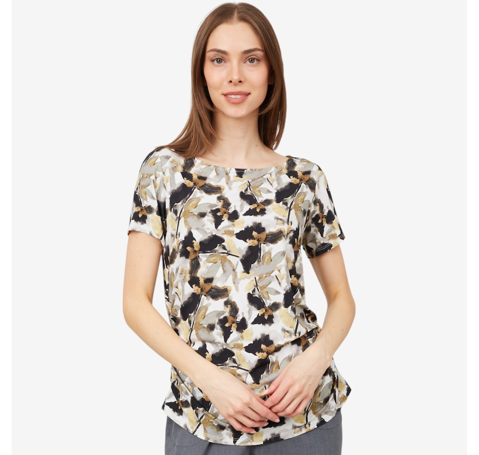 Hi Compact Viscose Print Short Sleeve Boatneck Top