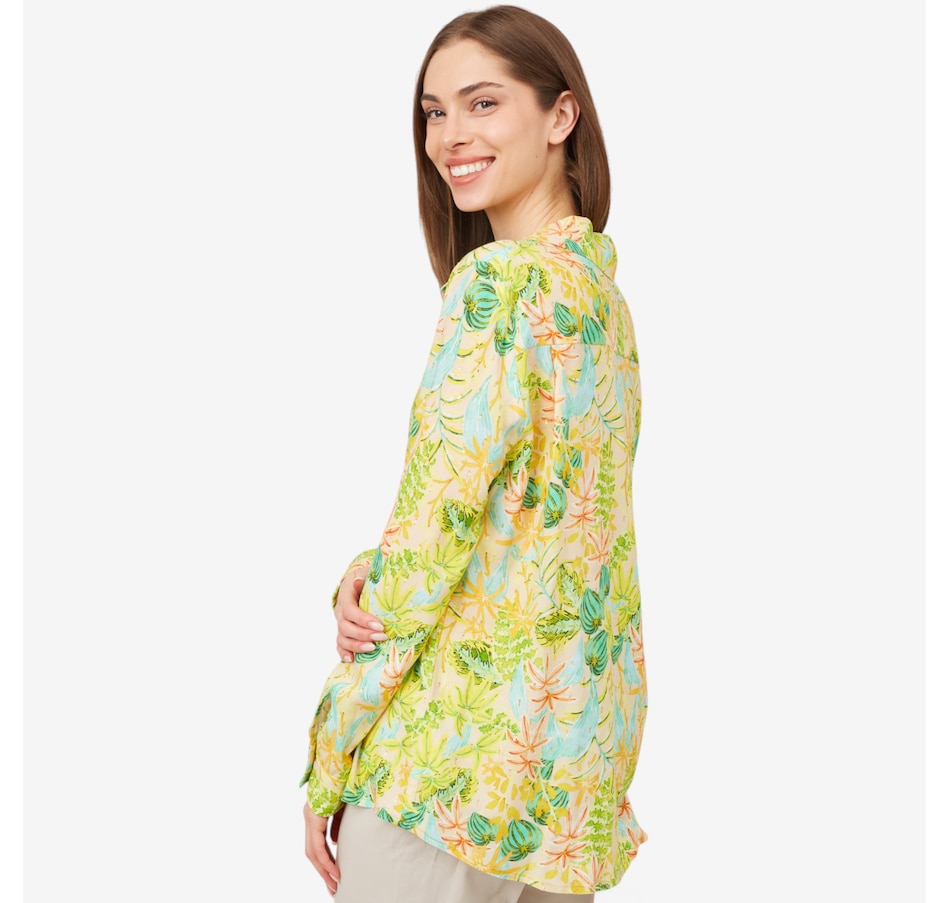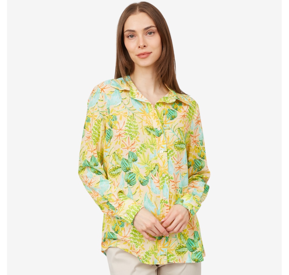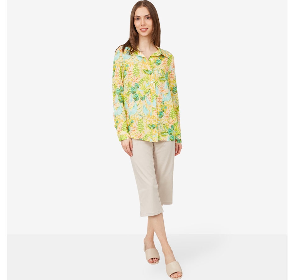 Centre your seasonal look in vibrant style with this tropical viscose shirt from Legacy. It's soft to the touch and features a beautiful colourful print with flecks of gold lurex thread.