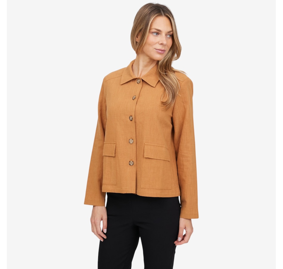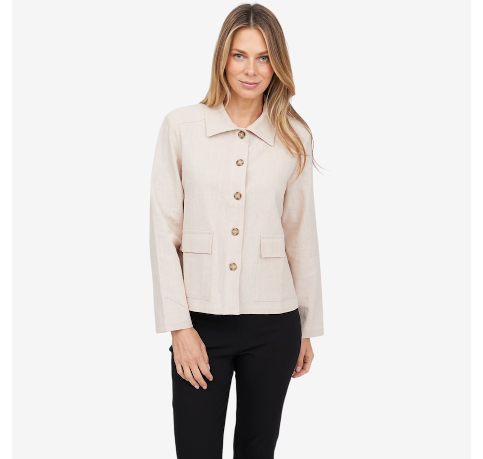 Refresh your warm‑weather wardrobe with the stonewash Hayle jacket from Legacy, a beautifully breathable layer designed to carry you effortlessly from spring through summer. Crafted from 100% natural ramie, it offers an airy, organic feel with a modern relaxed silhouette that makes layering easy. Patch pockets add both practicality and style, while the collared neckline and finished hem deliver a clean look. A button‑front closure gives you versatile styling options: wear it open over tanks and tees or buttoned for a more structured feel. True to size with a softly relaxed fit, the Hayle blends natural texture, everyday ease, and timeless design.