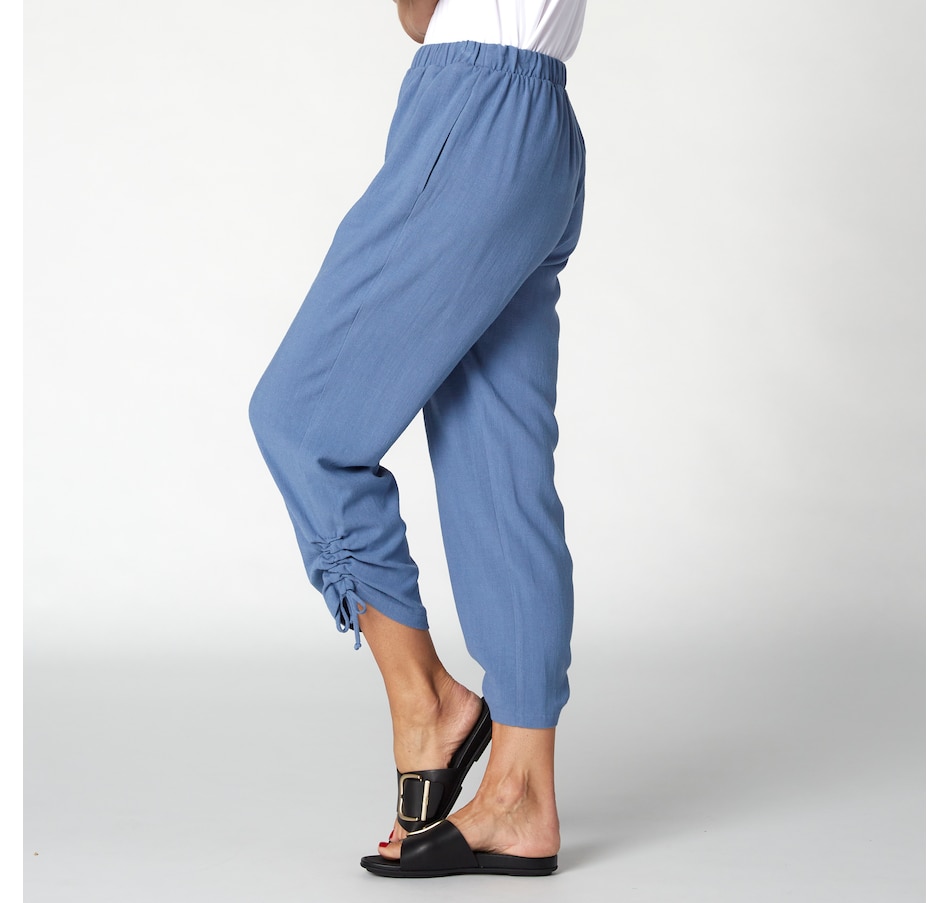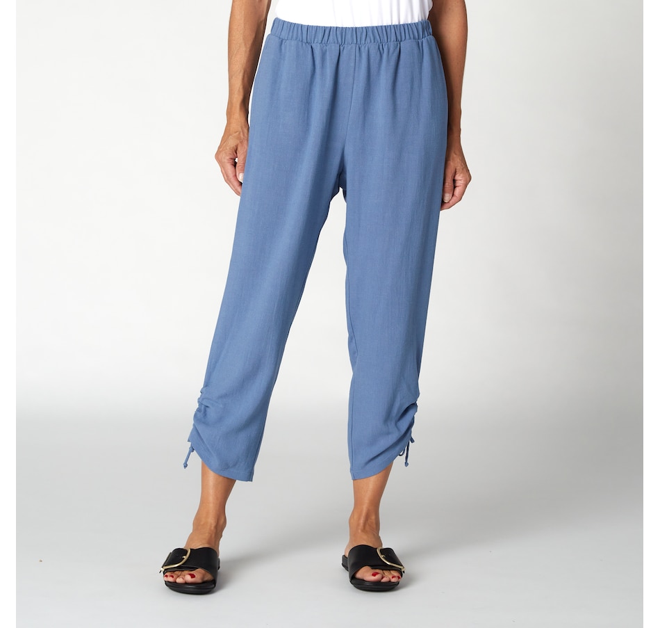 Tencel Crop Pant With Ruched Leg Opening Detail