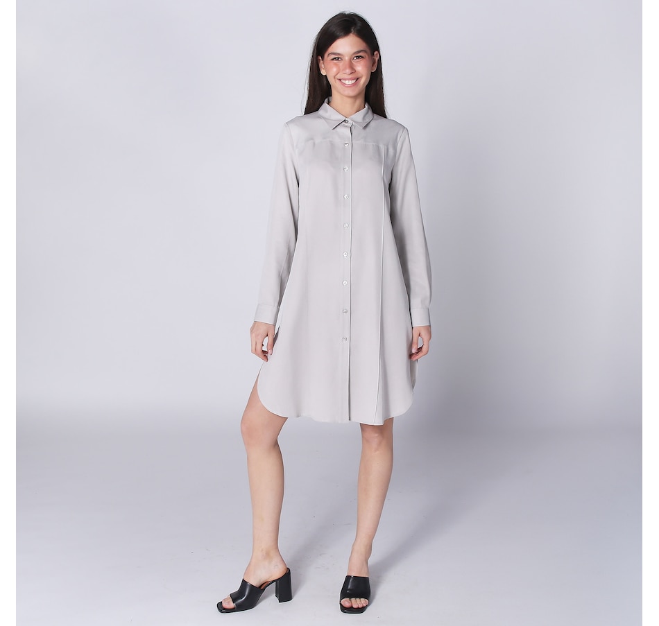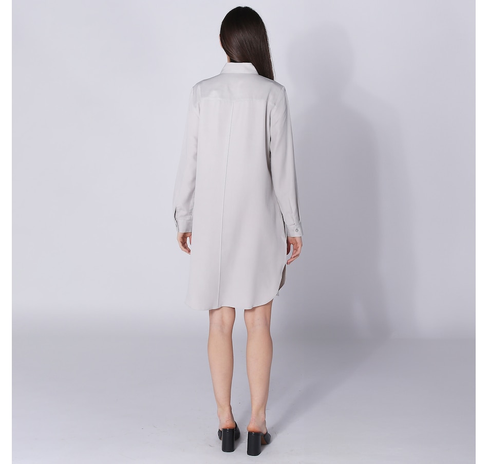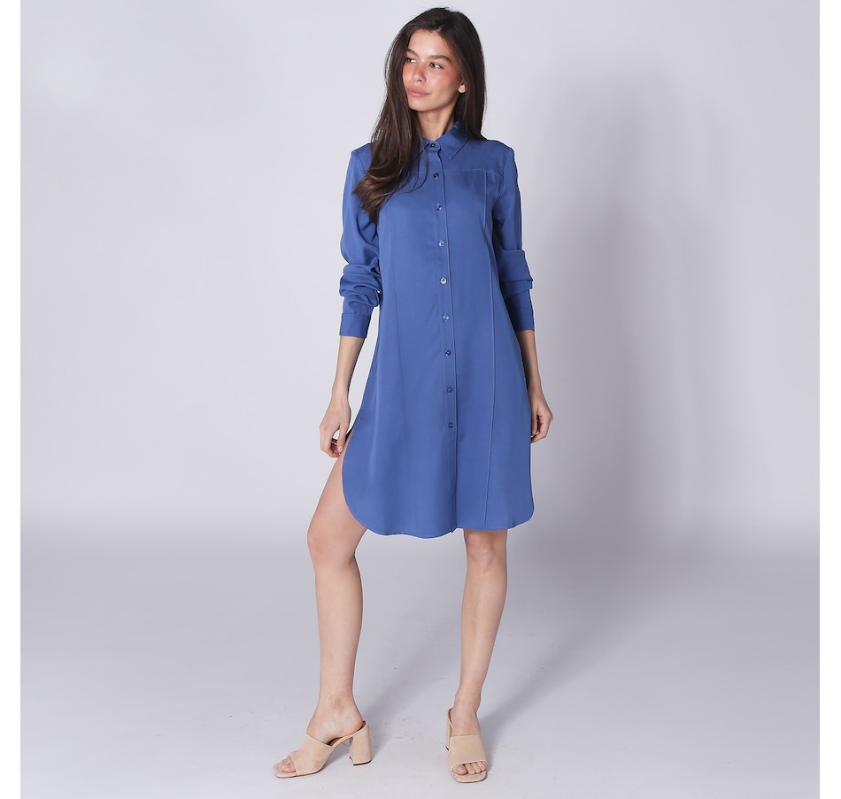 You'll centre and elevate your spring look in easy, upscale style wearing this tencel shirt dress from Legacy. Loaded with all kinds of elevated design features, It has a two-piece shirt collar front and back pin tuck detail. There is also a doubled clean finish back yoke, a clean finish shirt cuff with pleated detail, and fused front plackets with pearlized stylish buttons. It finishes with side slits and a hemline 1/4" clean finishing. This great piece can be worn as a dress or open as an oversize shirt. Either way, it looks just as fabulous.